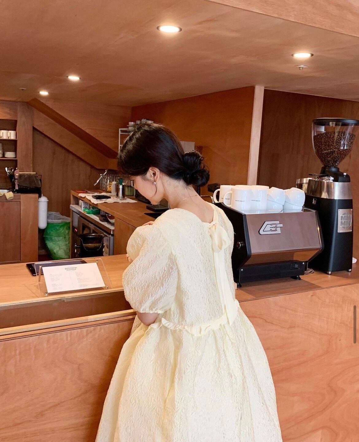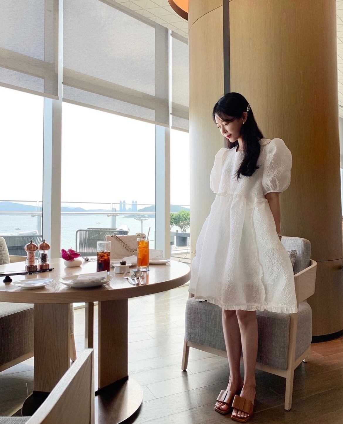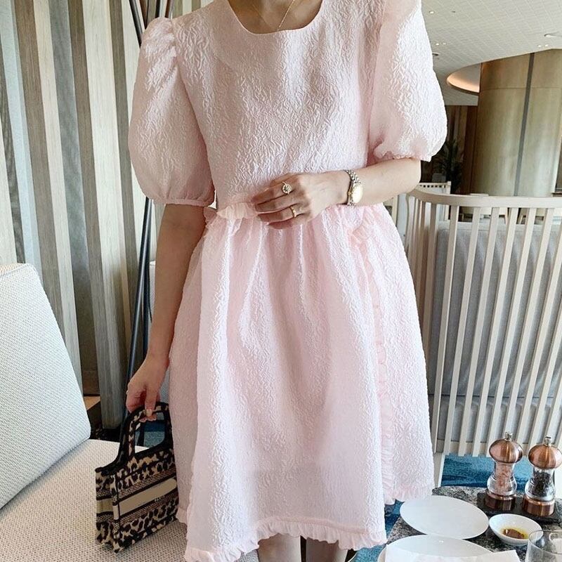 のみくまスウィートパフスリーブウーマンドレスシックフリルウエストカジュアルOネック春夏ドレス 大人ガーリー キュート スプリング 春物 サマー 夏物 kor70730349848