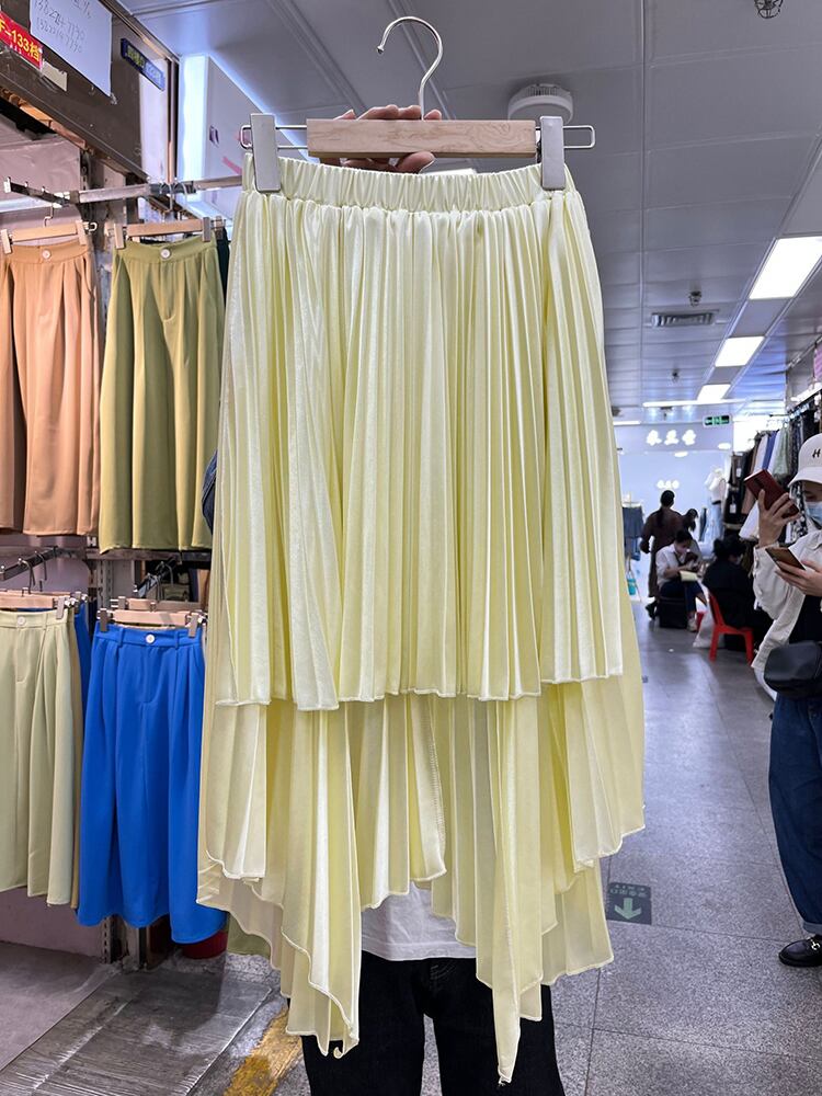 のみくまウエスト不規則プリーツスカート女性2022年春夏ボトムススタイルAラインスカートファルダス スプリング 春物 サマー 夏物 kor96098740958
