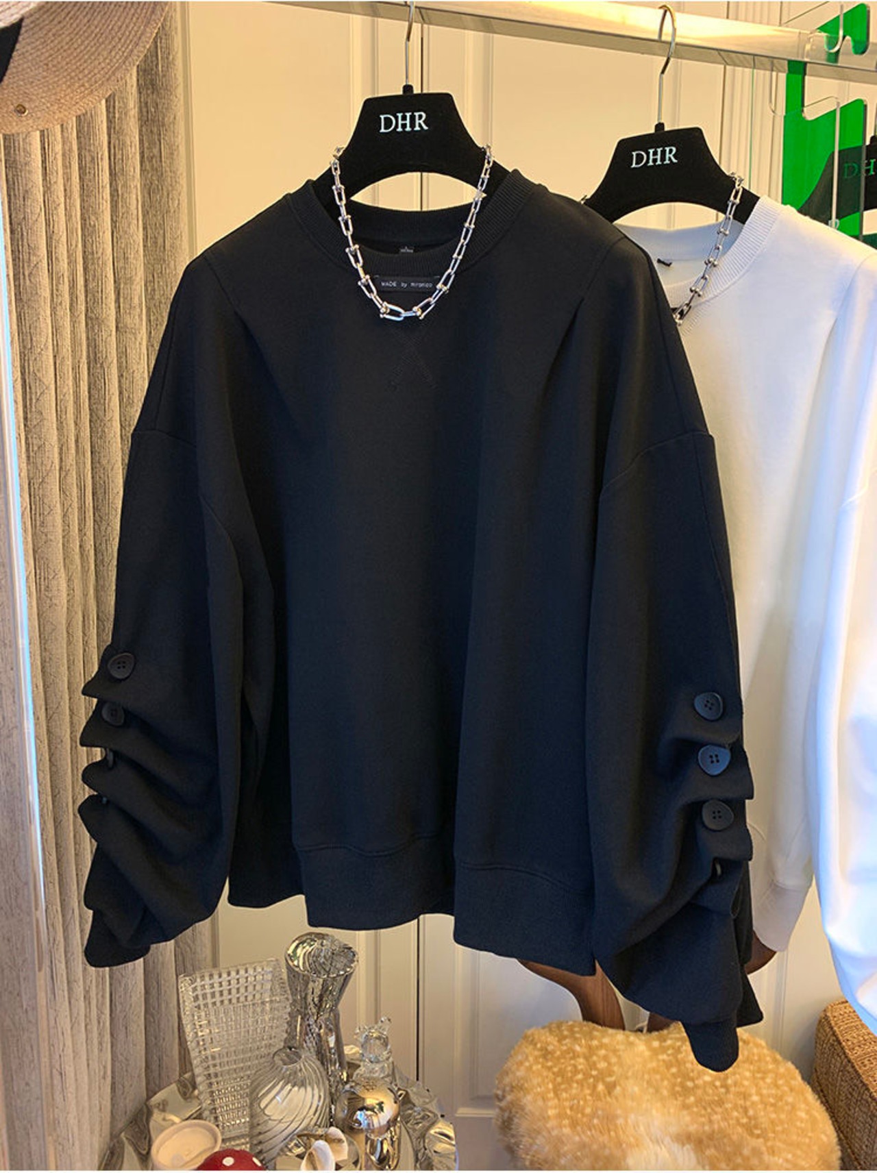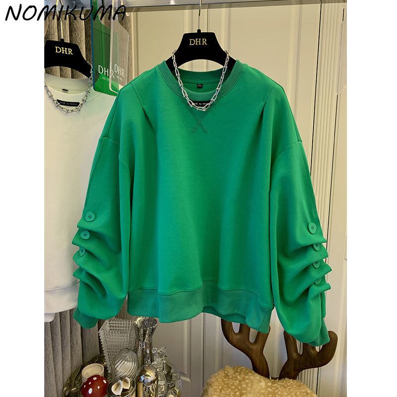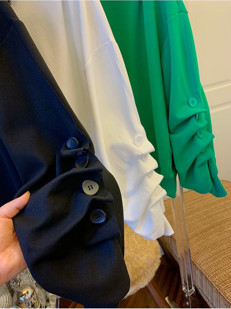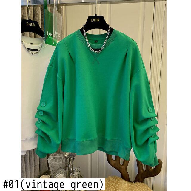 のみくまシックなボタンは長袖のスウェットシャツの女性の因果関係のOネックのジャンパー2022年春のプルオーバーパーカーを折ります ロング スプリング 春物 kor78208284779
