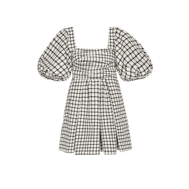 のみくまスクエアカラーチェック柄ワンピースウエストAラインウーマンワンピース2022春夏パフスリーブスウィートヴェスティドス 大人ガーリー キュート カジュアル スプリング 春物 サマー 夏物 ドレス スクウェア kor26721768966