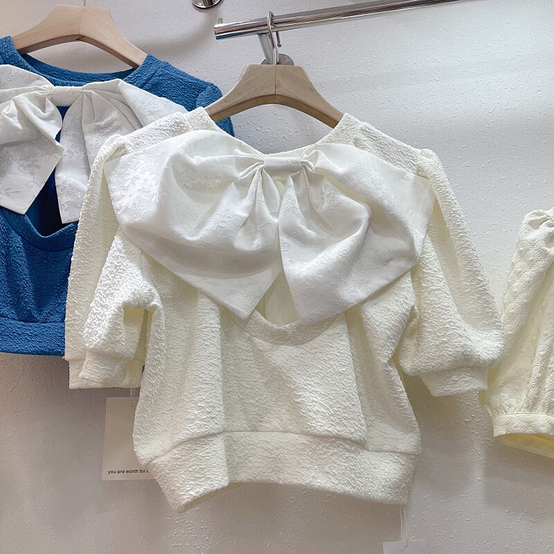 ノミクマシックボウノット中空OネックグラフィックTシャツ2022サマーパフスリーブシャツ女性Causlaショートプルオーバートップ リボン 夏物 kor96002153105