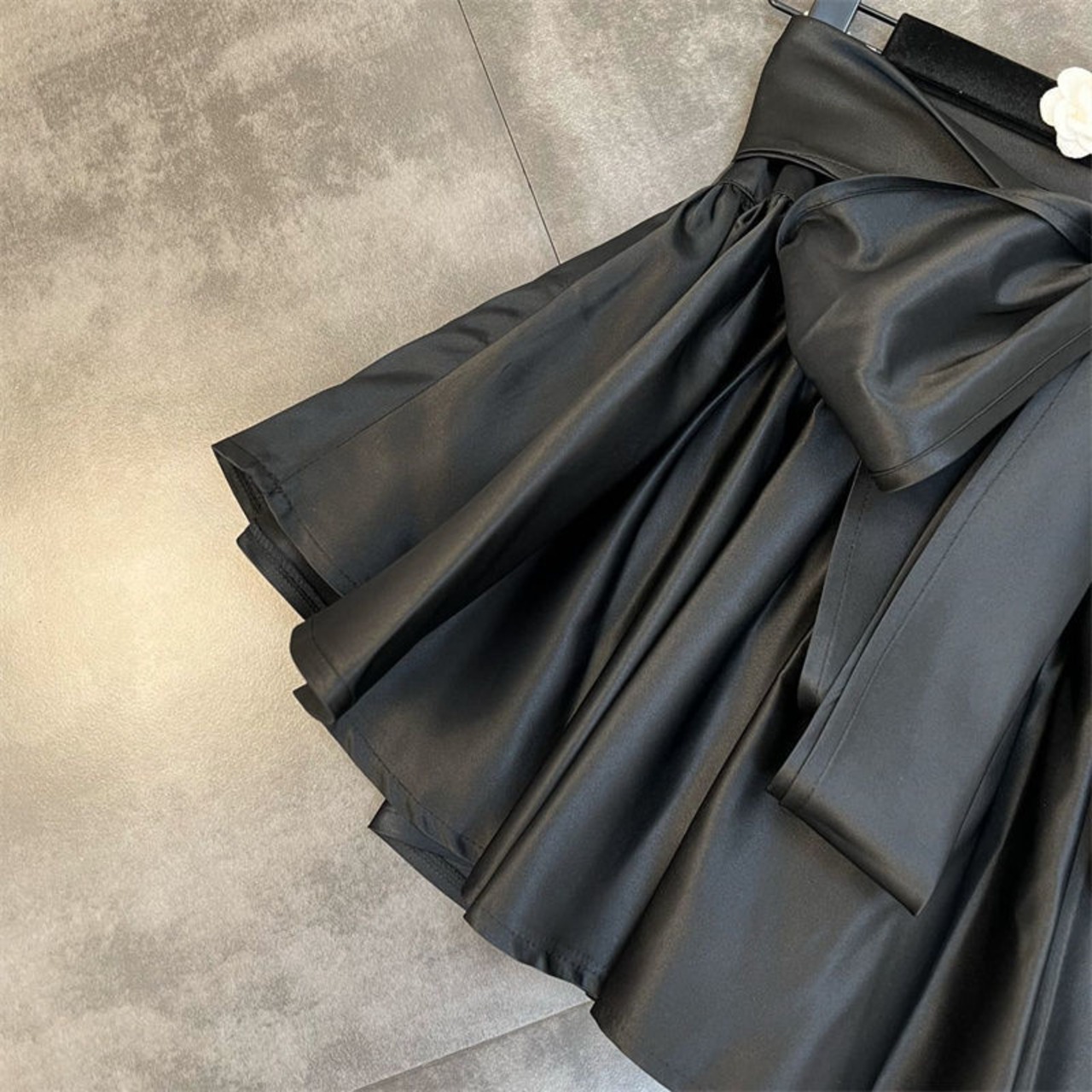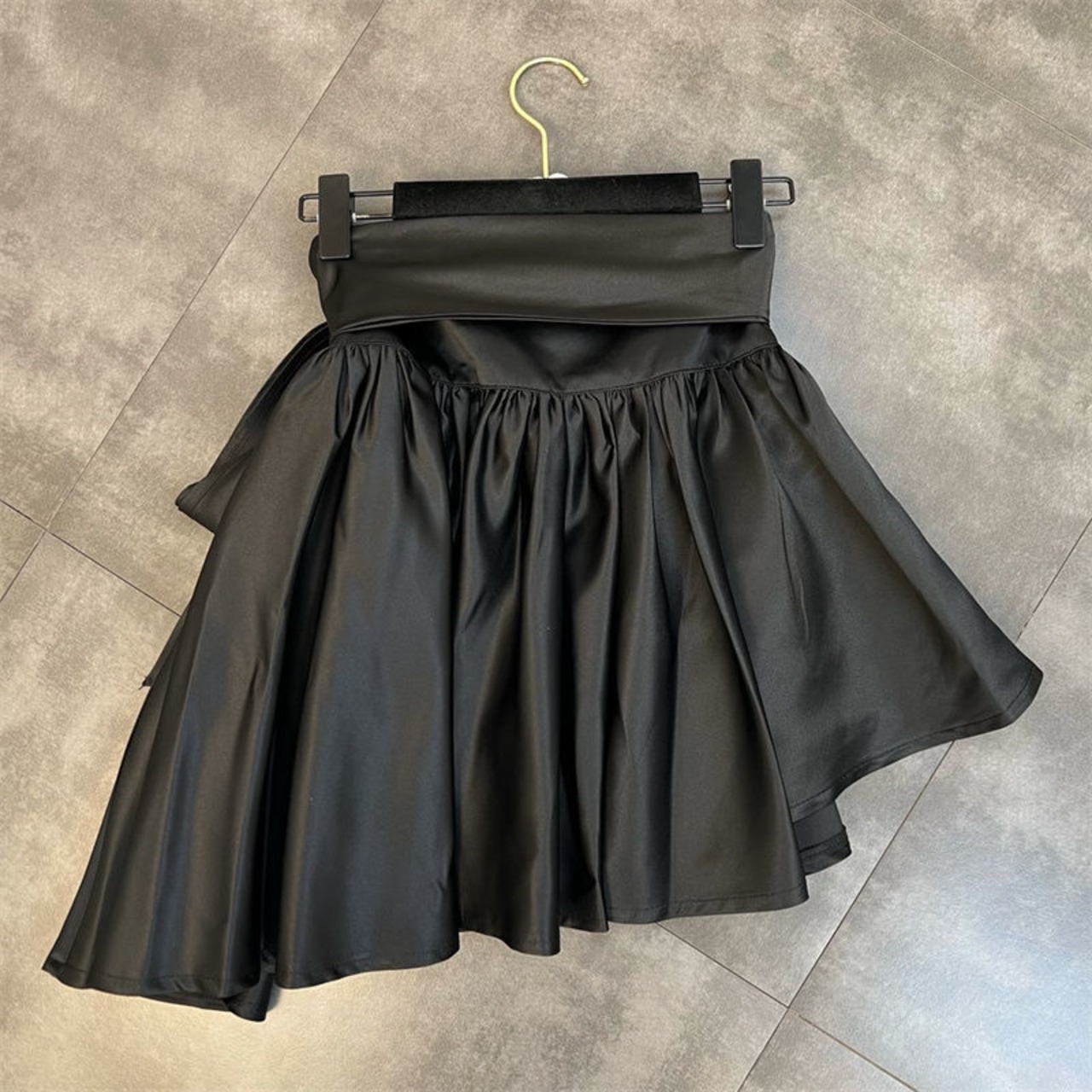 のみくまボウ包帯ウエストウーマンスカート2022春夏ボトムス原因不規則スカートファルダス リボン スプリング 春物 サマー 夏物 kor43365068258