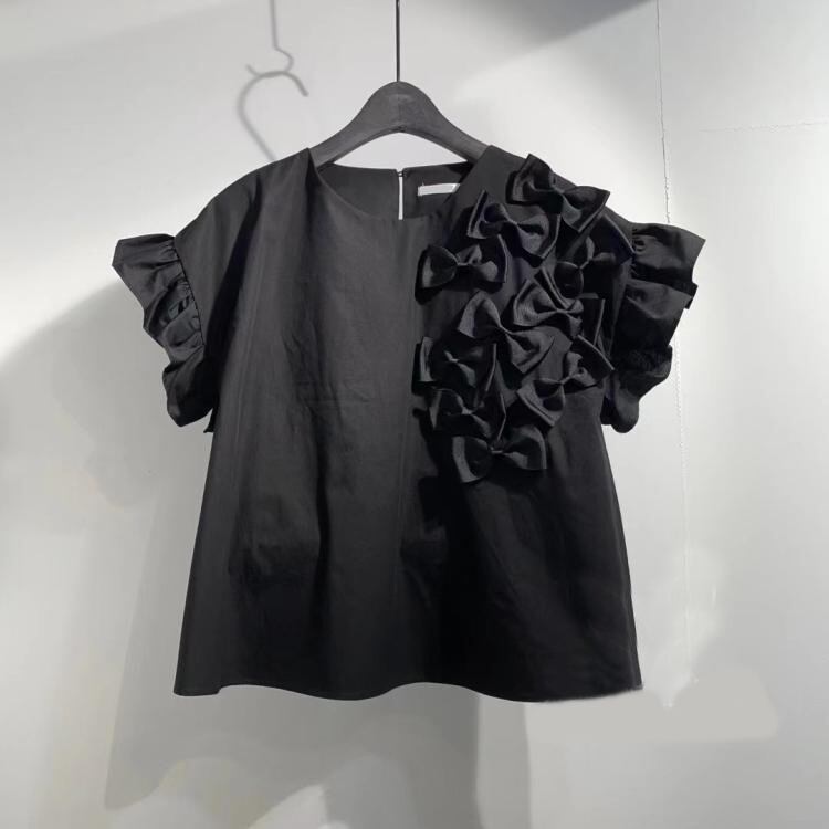 のみくまシックスウィートボウノットウーマンブラウス2022サマーバタフライ半袖シャツCausalDe ショート リボン ハーフスリーブ 大人ガーリー キュート カジュアル 夏物 kor32155775839