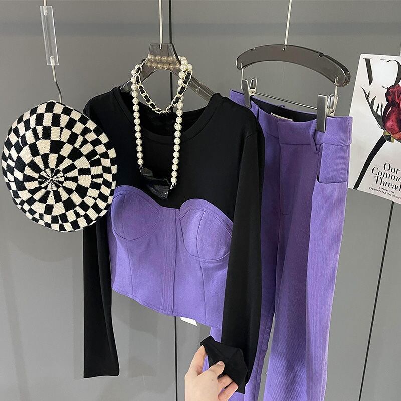 のみくま因果女性スウェットシャツセット2022春ショートヒットカラートップス+ウエストワイドレッグロングパンツ衣装 スプリング 春物 ワイドパンツ kor23664995692