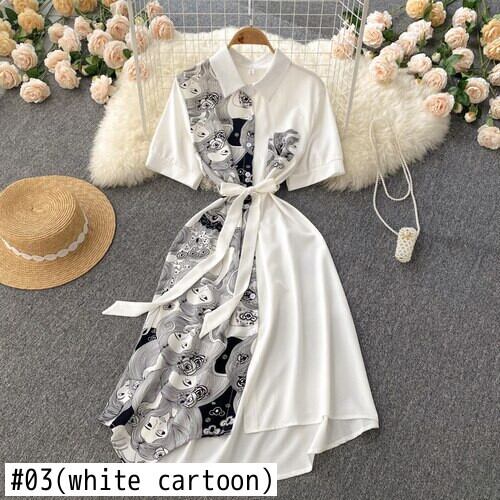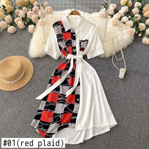 夏の女性のブラウスドレス不規則なプリント半袖Vestidosシングルブレスト包帯スリムウエストドレス ショート ハーフスリーブ サマー 夏物 kor31679353289