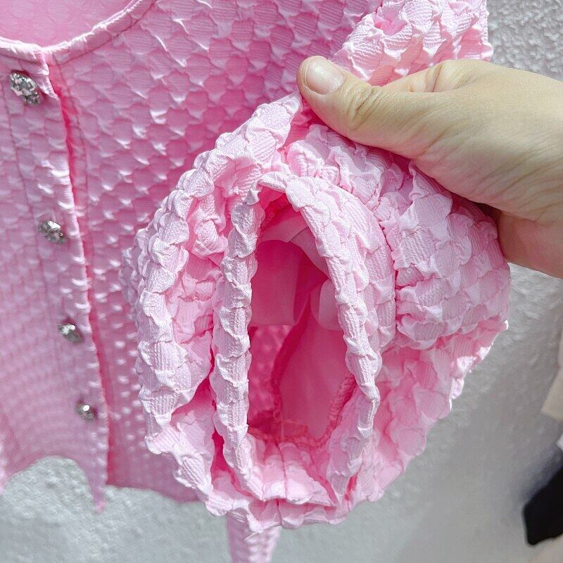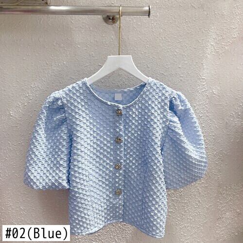 のみくまスウィートパフスリーブショートレディースブラウス因果シングルブレストOネックシャツ2022サマーシック 大人ガーリー キュート カジュアル 夏物 kor22733866973