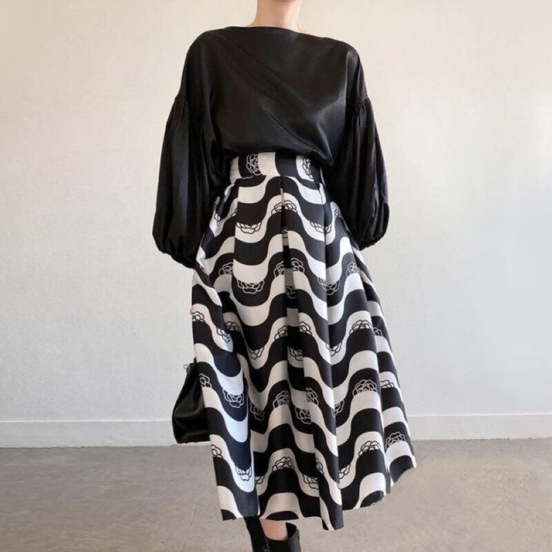 のみくまウェーブストライププリントウーマンスカートウエストスカート2022春夏ボトムスファルダス スプリング 春物 サマー 夏物 kor7848136039