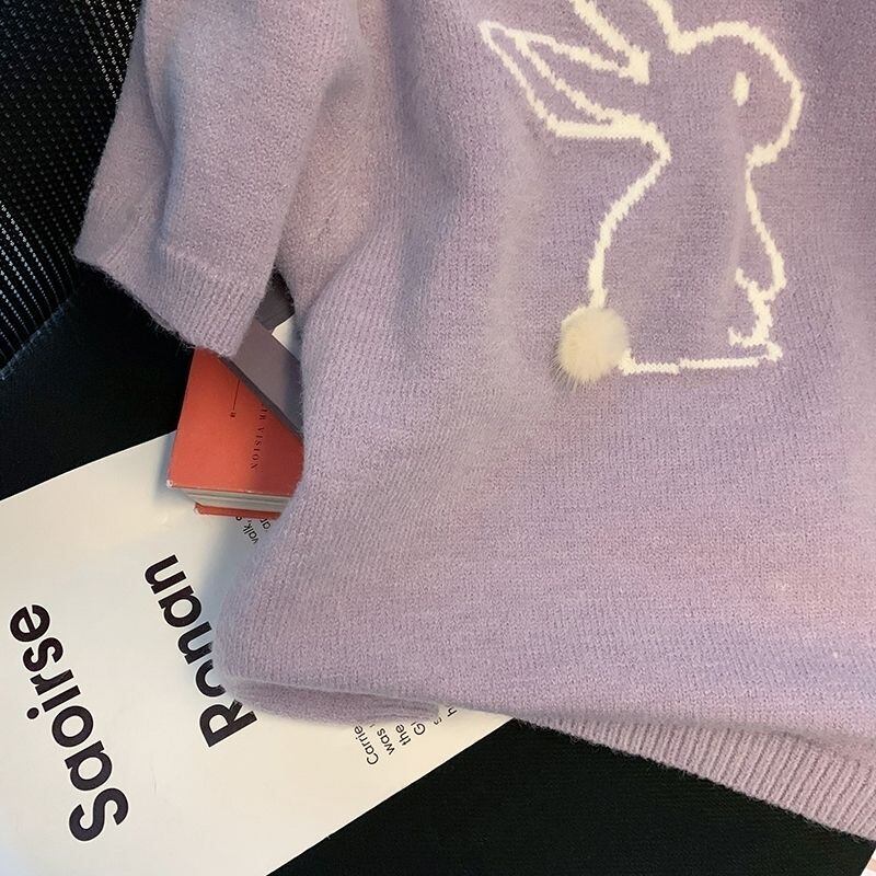 のみくまスウィートショートニットトップスシックな漫画の女性のセーター2022年春夏パフスリーブOネックプルオーバーニット 大人ガーリー キュート カジュアル スプリング 春物 サマー 夏物 kor59053019422