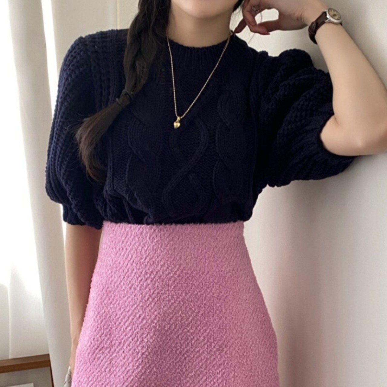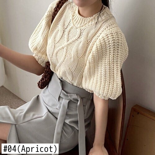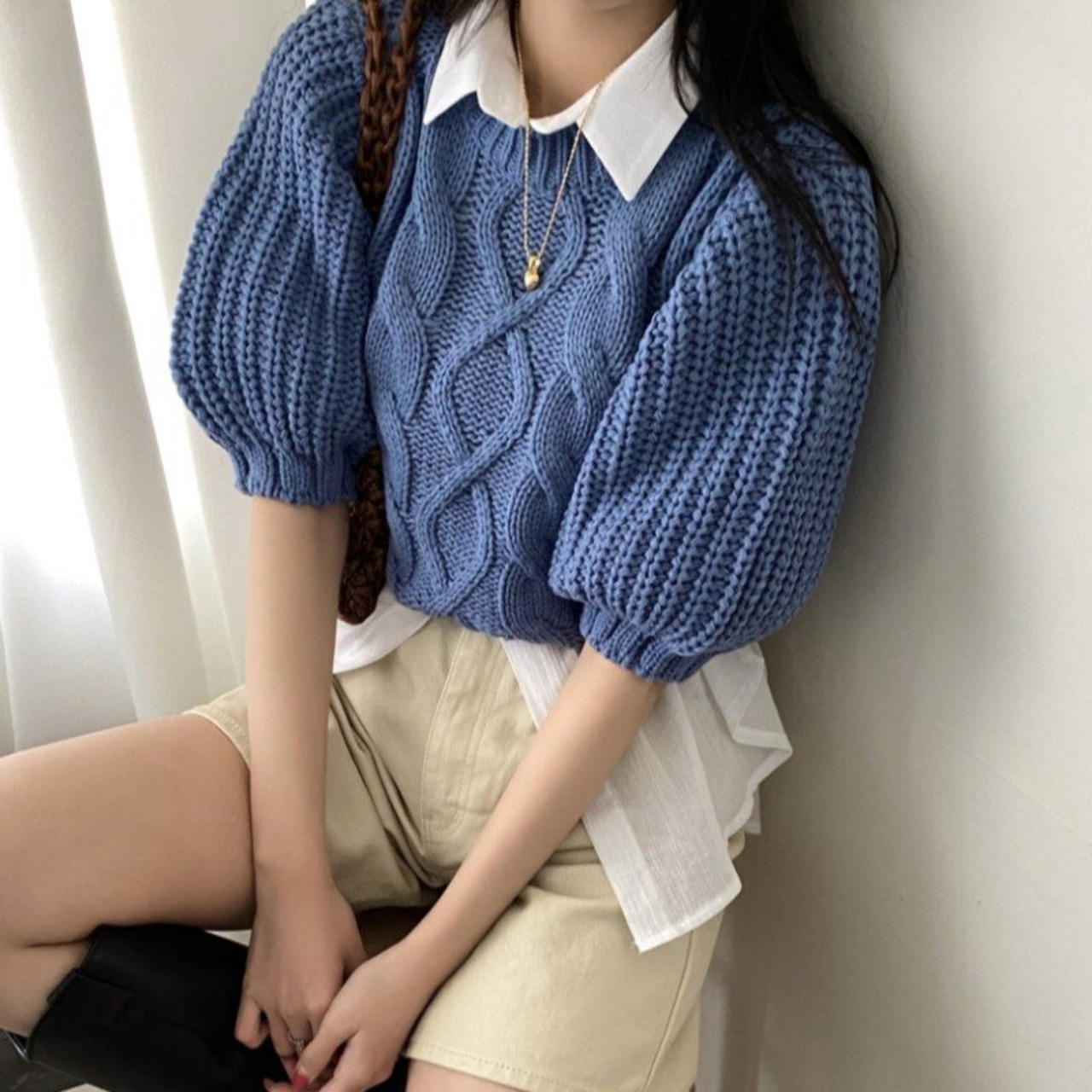 のみくまカジュアルパフスリーブレディースセーターシックなOネックプルオーバーニット2022年春夏スウィートツイストニットトップス 大人ガーリー キュート スプリング 春物 サマー 夏物 kor87556957453