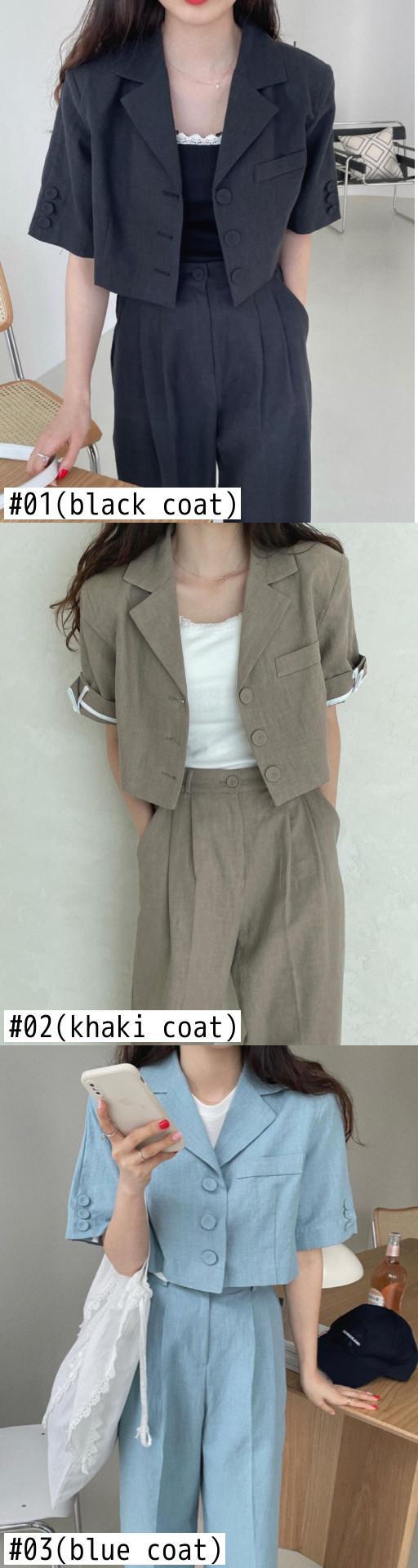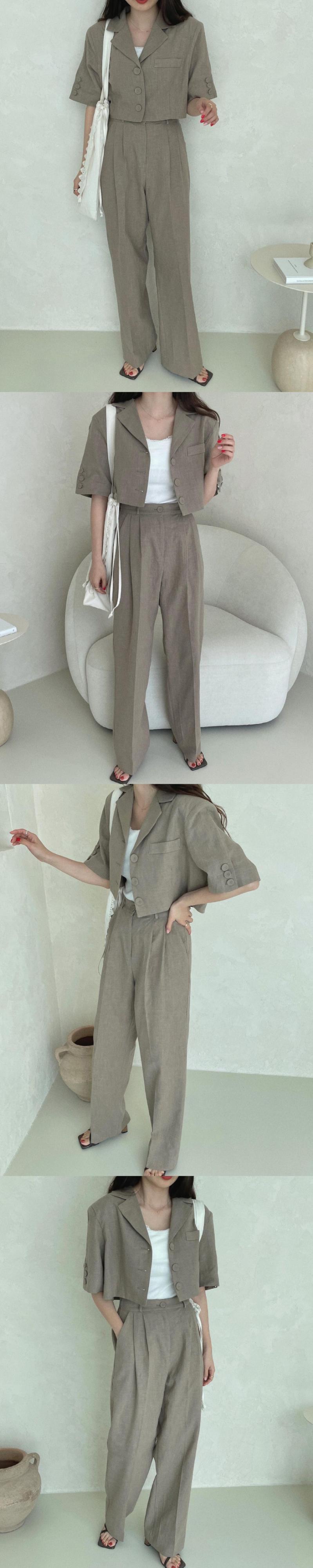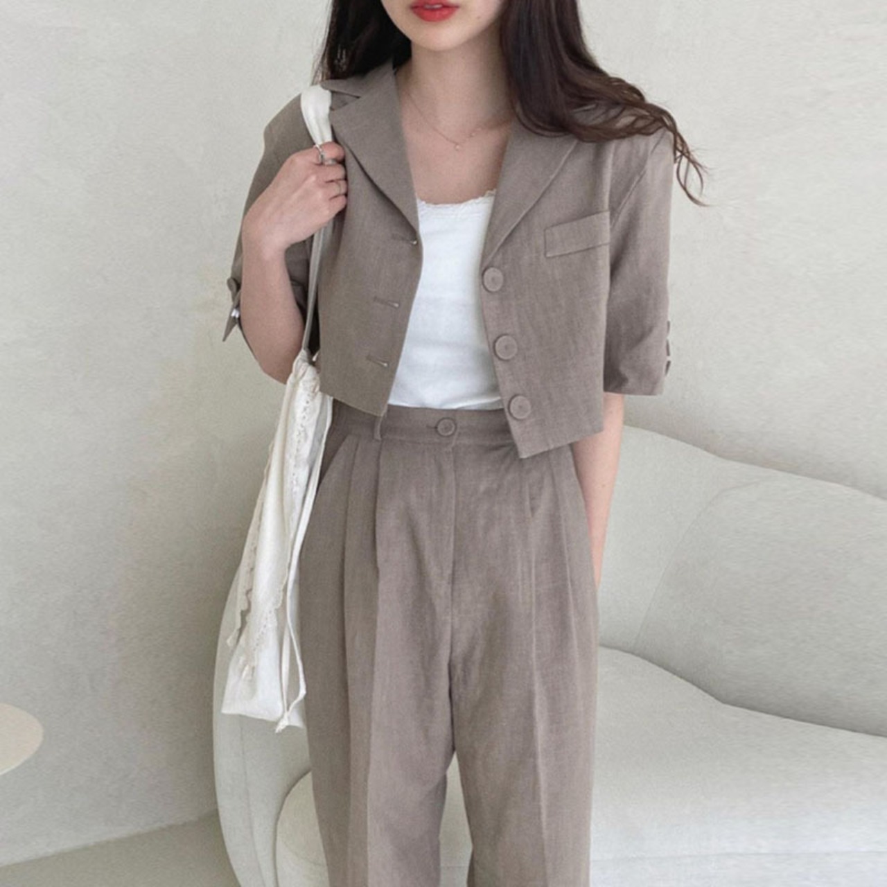のみくまシックサマーレディースパンツセットノッチカラー半袖クロップコート+ウエストロングワイドレッグパンツ2022 ショート ハーフスリーブ 夏物 ワイドパンツ kor5394680849