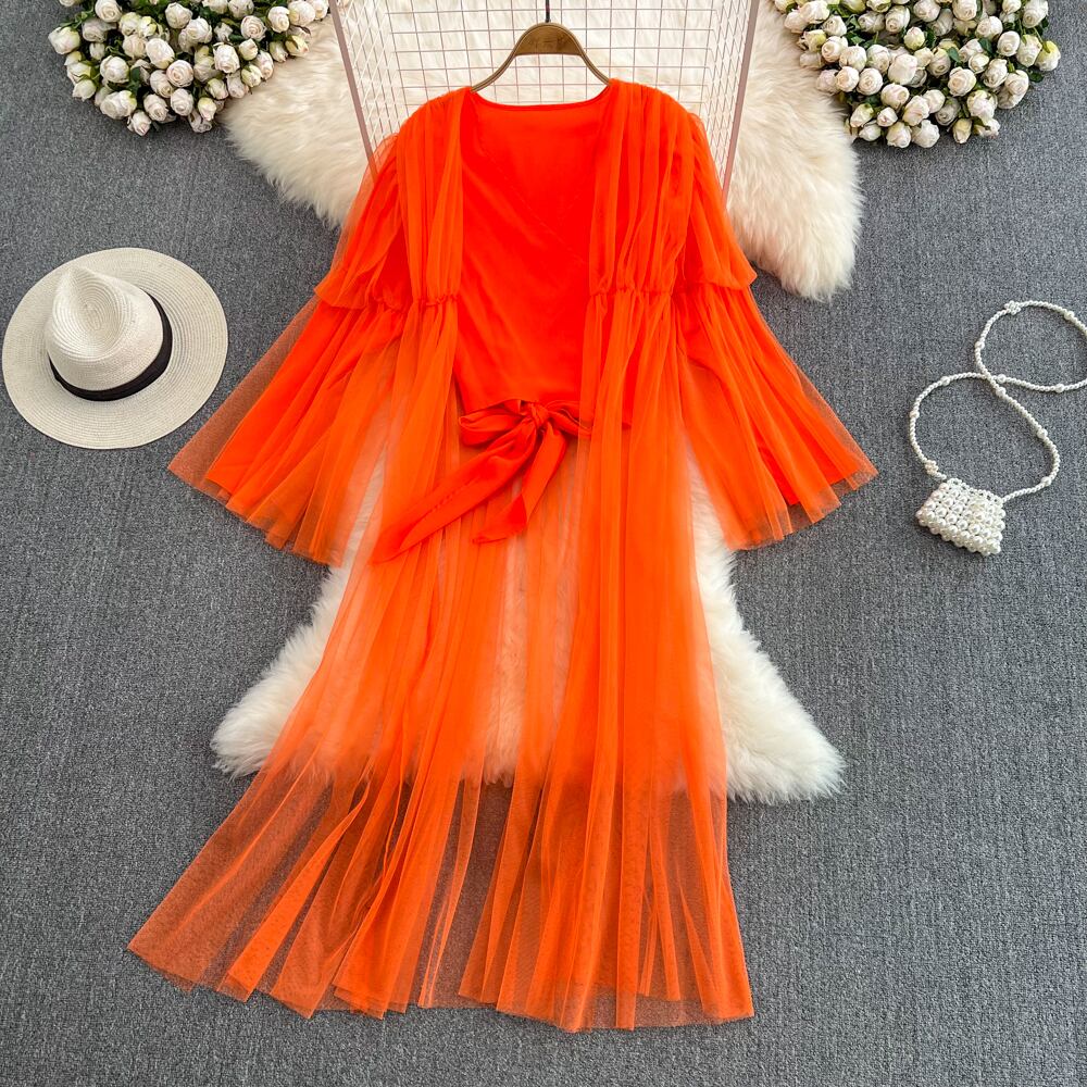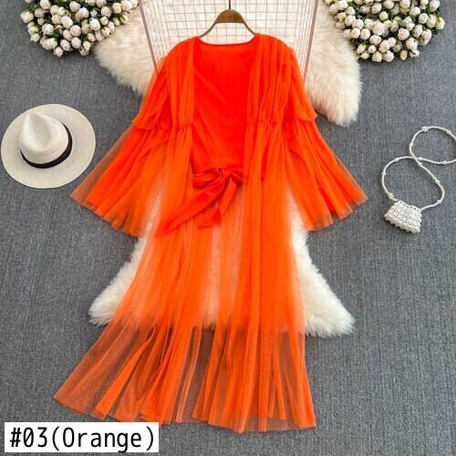 ノミクマ2022サマーガーゼパッチワークミディアムロングシフォンカーディガンボウタイロングスリーブVネックブラウスカジュアルレディースシャツ リボン 長袖 夏物 kor6393409894
