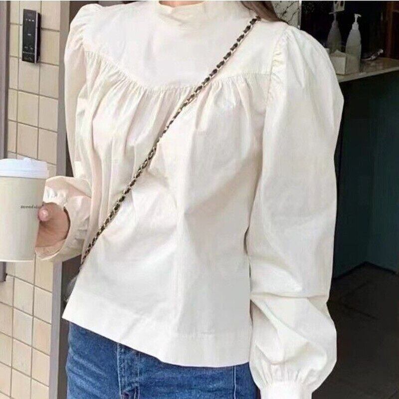 のみくま2022ボウ包帯スタンドネックブラウスシャツカジュアルパフスリーブスウィートレディーストップシック リボン 大人ガーリー キュート kor18769328768
