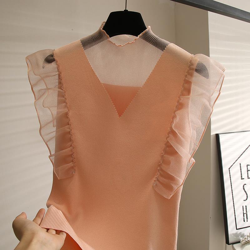 Nomikuma Chic Gauze Pactwork Sleevless Knitwear 2022 Spring Summer O-neck Pullovers Causal Knitted Tops スプリング 春物 サマー 夏物 Oネック kor9932835580