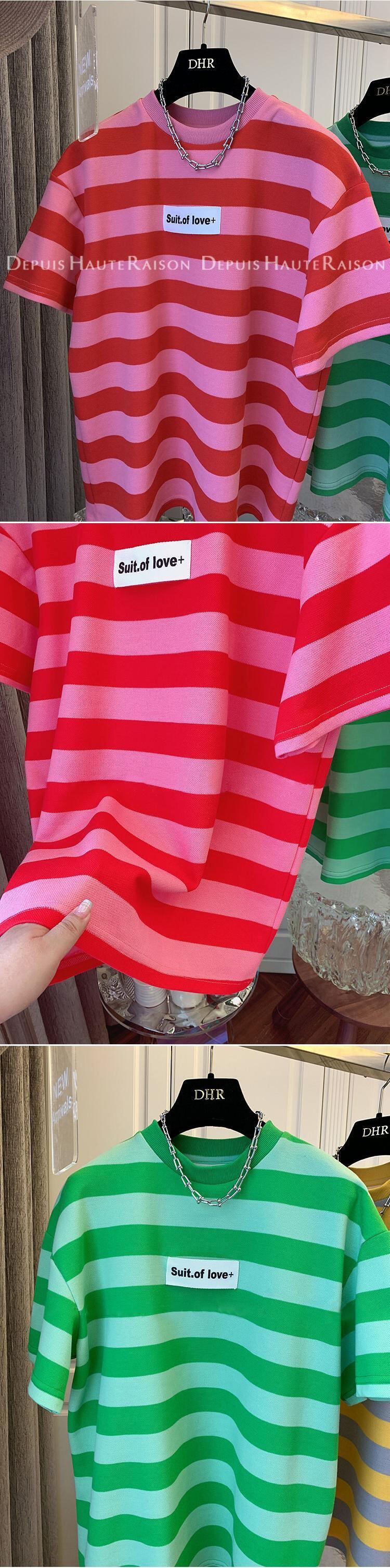 のみくまヒットカラーストライプレターウーマンTシャツカジュアル半袖グラフィックTシャツ2022年春夏トップスシャツ ショート ハーフスリーブ スプリング 春物 サマー 夏物 kor86381226923