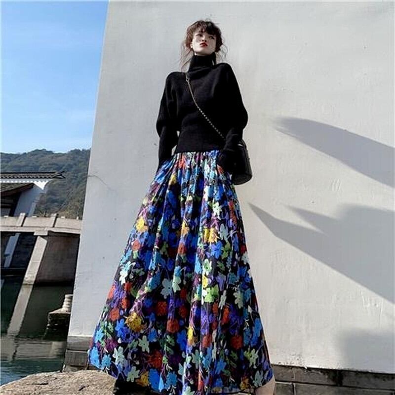 ノミクマ2022春夏フローラルロングウーマンスカートエラスティックウエストAラインスカートファルダス 伸縮 スプリング 春物 サマー 夏物 花柄 kor66649870791