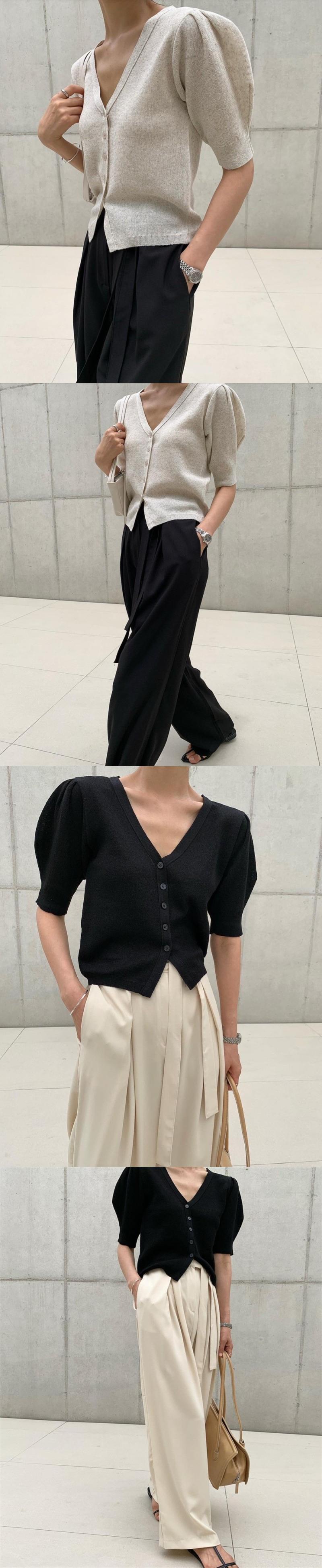 ノミクマシックサマーウィメンズショートニットカーディガンパフスリーブVネックニット2022ソリッドセーターコート 夏物 ソリッドカラー kor98539004787