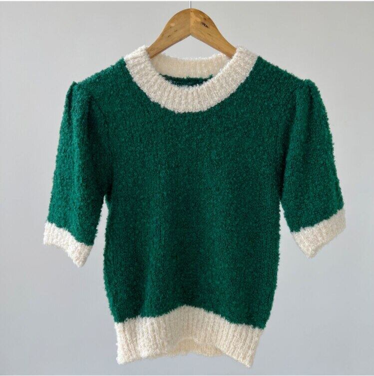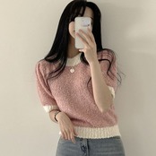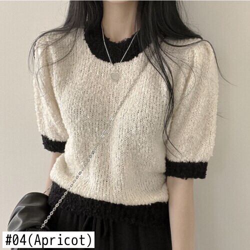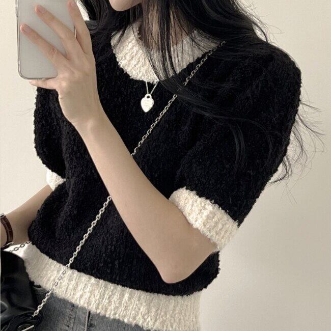 ノミクマヒットカラーウーマンセーターCausal半袖Oネックプルオーバーニット2022春夏スウィートニットトップス ショート ハーフスリーブ 大人ガーリー キュート カジュアル スプリング 春物 サマー 夏物 kor89384452653