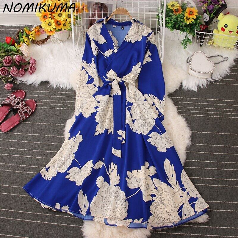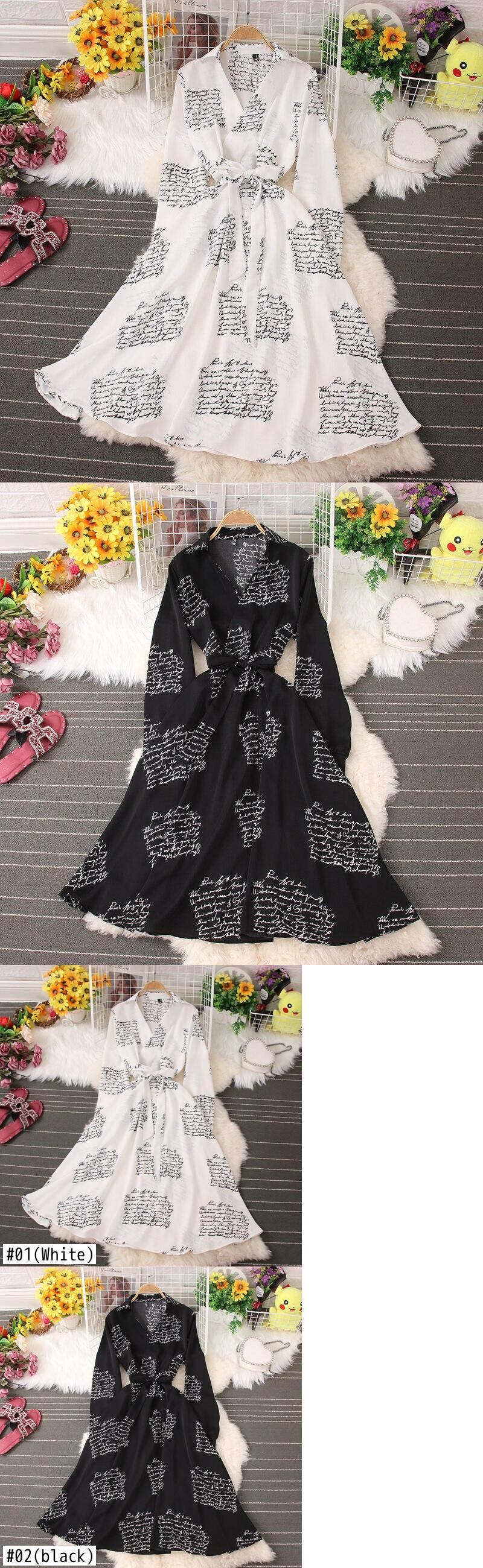 のみくまプリンティングウーマンドレスシックボウバンデージウエストヴェスティドス2022年春長袖ワンピース ロング リボン スプリング 春物 kor71621391006