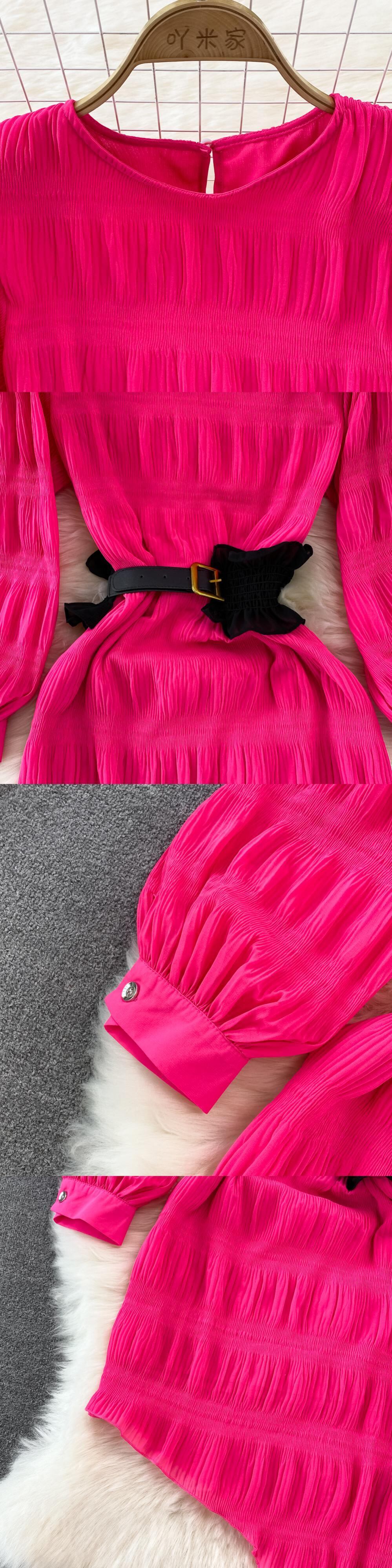 Nomikuma 2022SprignPuffスリーブウーマンドレスベルトスリムウエストVestidosCausalO-neck不規則なドレス ハーネス Oネック kor70400952300