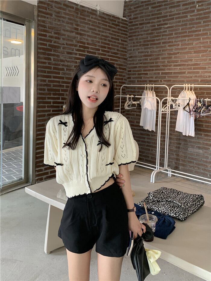 のみくまシックボウノット半袖ニットレディース2022年春夏カーディガンスウィートホローアウトショートニットコート リボン ハーフスリーブ 大人ガーリー キュート カジュアル スプリング 春物 サマー 夏物 kor92848543606