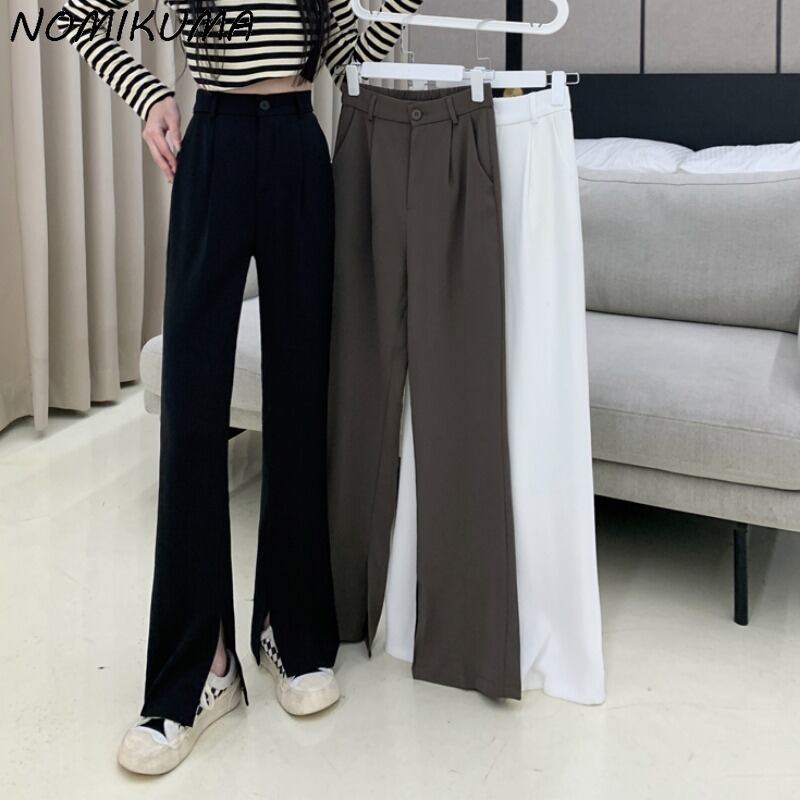 のみくまスプリットスーツパンツレディース2022春夏ロングパンツウエストソリッドワイドレッグパンツ スプリング 春物 サマー 夏物 ワイドパンツ ソリッドカラー kor74900833242