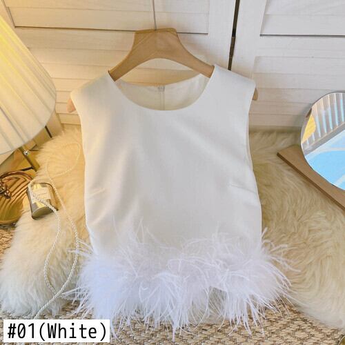 ノミクマファーパッチワークショートトップスレディースノースリーブOネックタンクトップ2022春夏ベスト スプリング 春物 サマー 夏物 kor48133887983