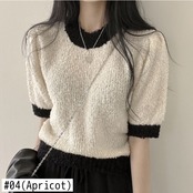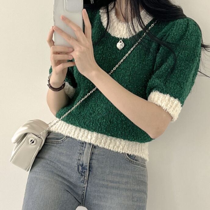 ノミクマヒットカラーウーマンセーターCausal半袖Oネックプルオーバーニット2022春夏スウィートニットトップス ショート ハーフスリーブ 大人ガーリー キュート カジュアル スプリング 春物 サマー 夏物 kor38472110021