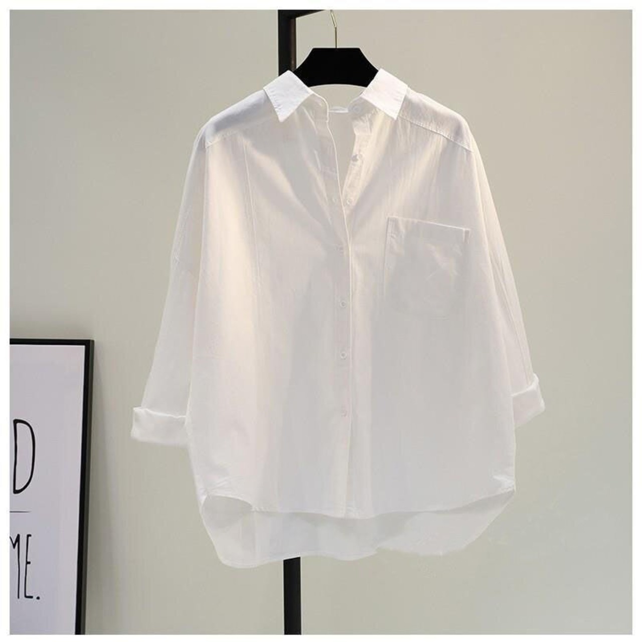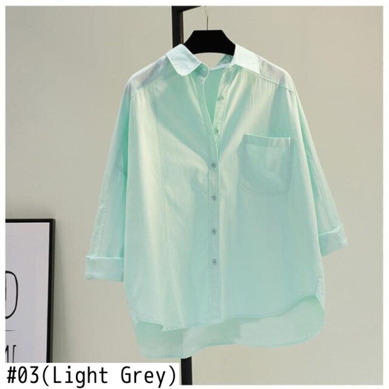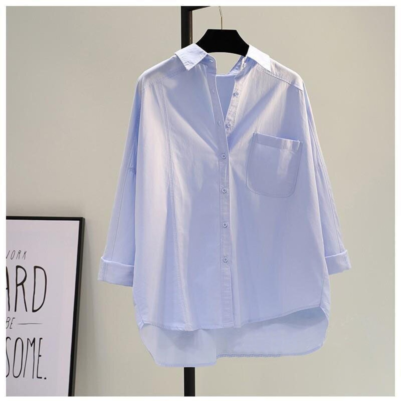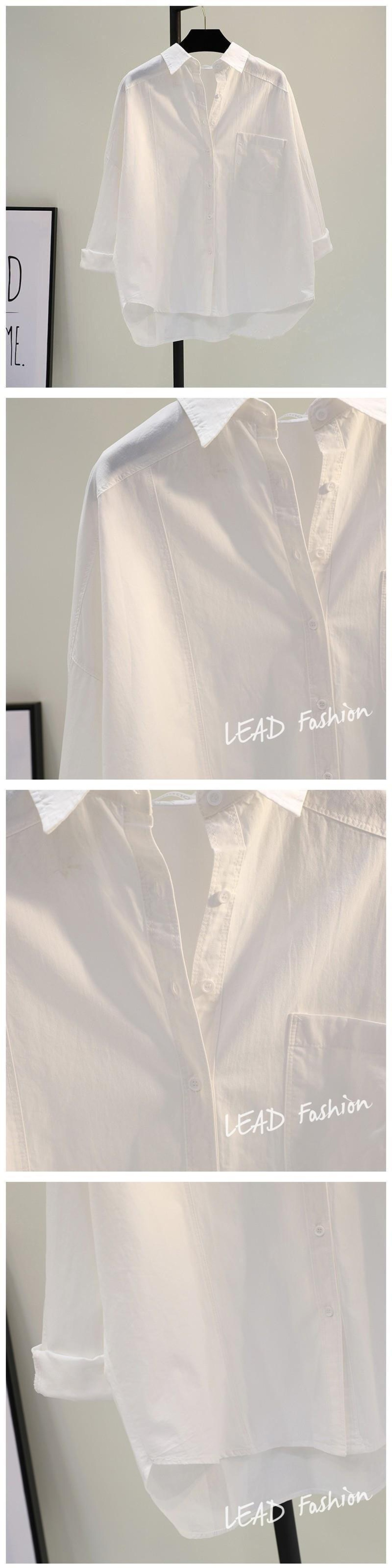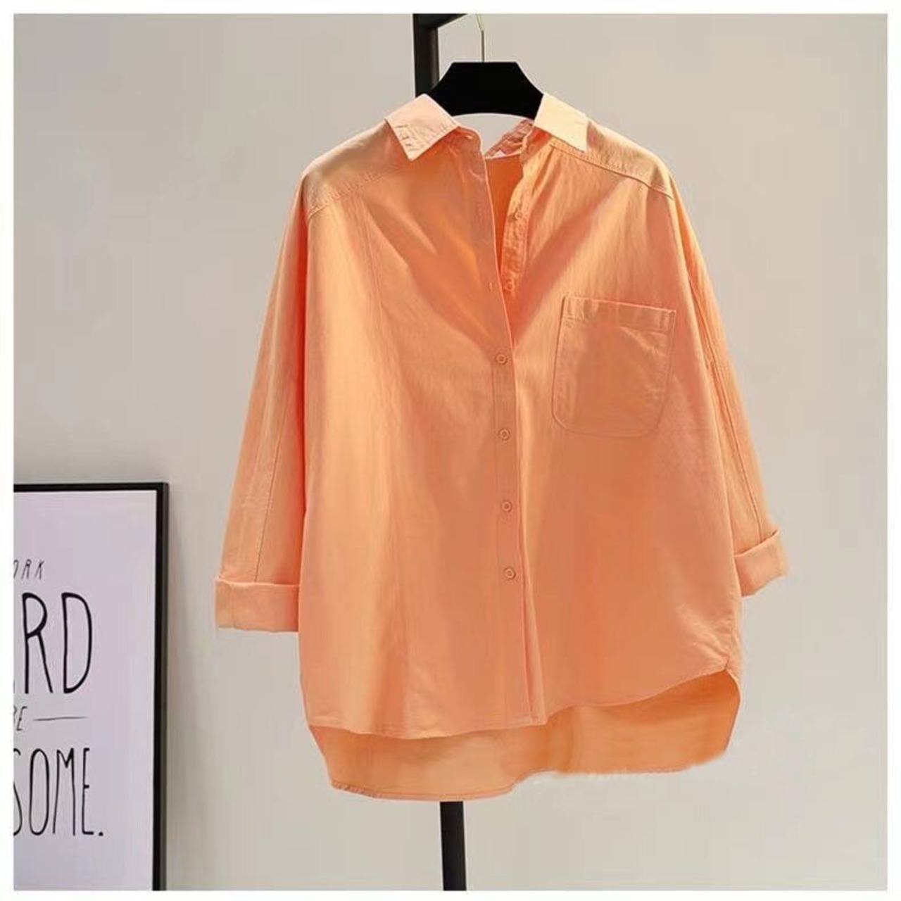 のみくま因果長袖女性ブラウスターンダウンカラーシャツポケットシングルブレストデモダ2022 ロング kor12594659328