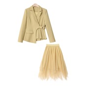 のみくまツーピースセットレディーススリムウエストブレザーコート+ウエストメッシュスカートセット2022春秋2ピースセット スプリング 春物 オータム 秋物 kor13168547508