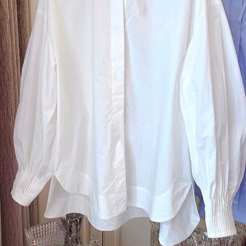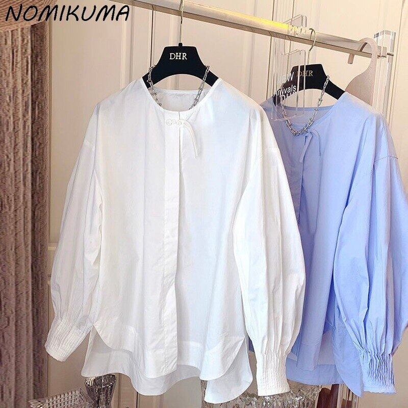 Nomikuma Women Blouse Vintage Single Breasted O-neck Shirt Causal Fold Long Sleeve Solid De Moda 2022 ロング 長袖 ブラウス Oネック ソリッドカラー ビンテージ kor73812484703