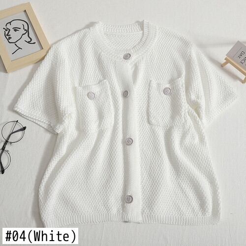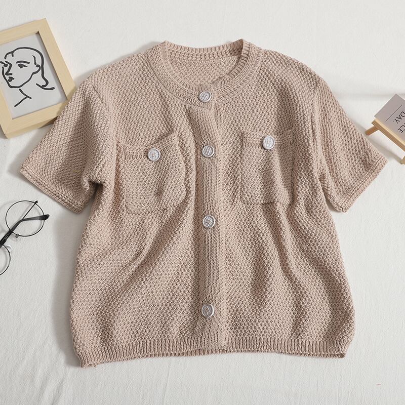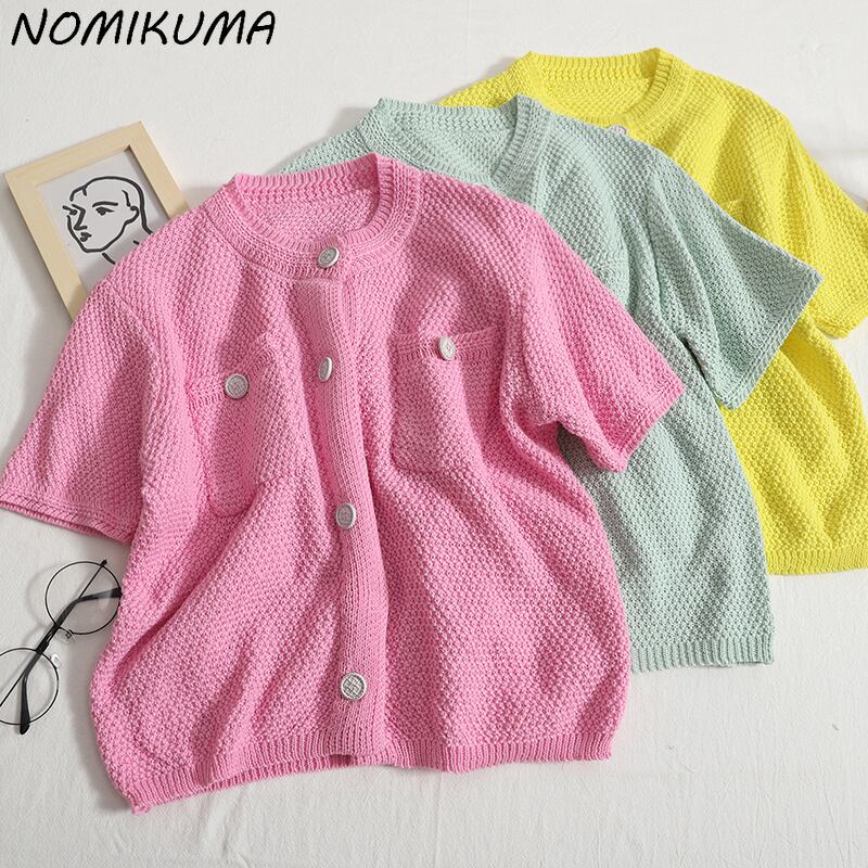 ノミクマOネックソリッド半袖ポケットニットウェアアウトウェアレディースサマーセーターコート2022カジュアルカーディガントップス ショート ハーフスリーブ 夏物 ソリッドカラー kor16438086627