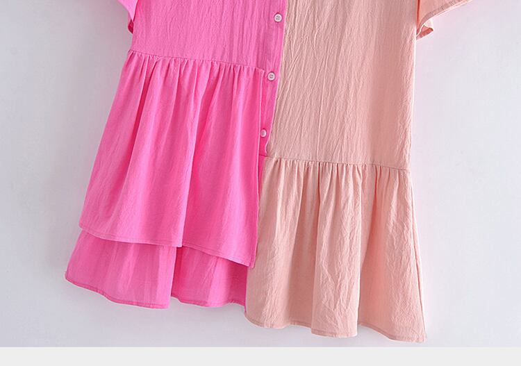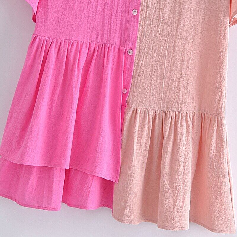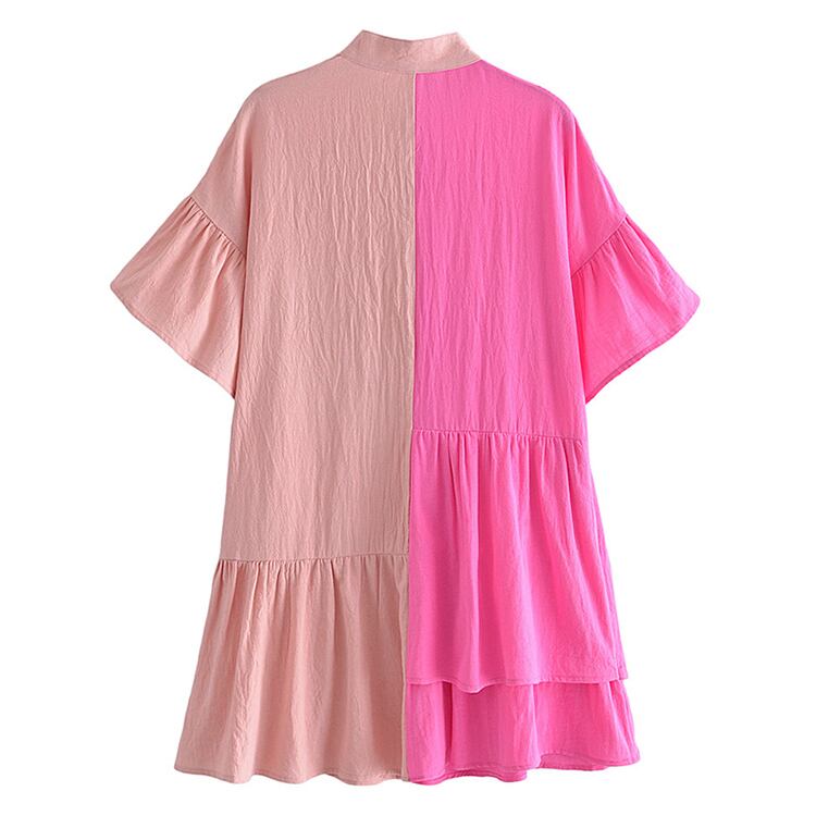 ノミクマコントラストカラーウーマンドレススタンドネックシックドレス2022イレギュラーフリル因果フレアスリーブVestidos kor4636545363