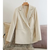 ノミクマブレザーコートレディース2022年春スーツカジュアルダブルブレストジャケット長袖ターンダウンコラーブレザー ロング スプリング 春物 kor89538552700