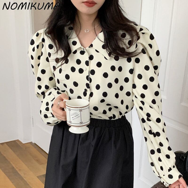 のみくまドットレディースブラウスターンダウンカラーパフスリーブシャツ2022シックスプリングモーダデ 春物 kor63227896066