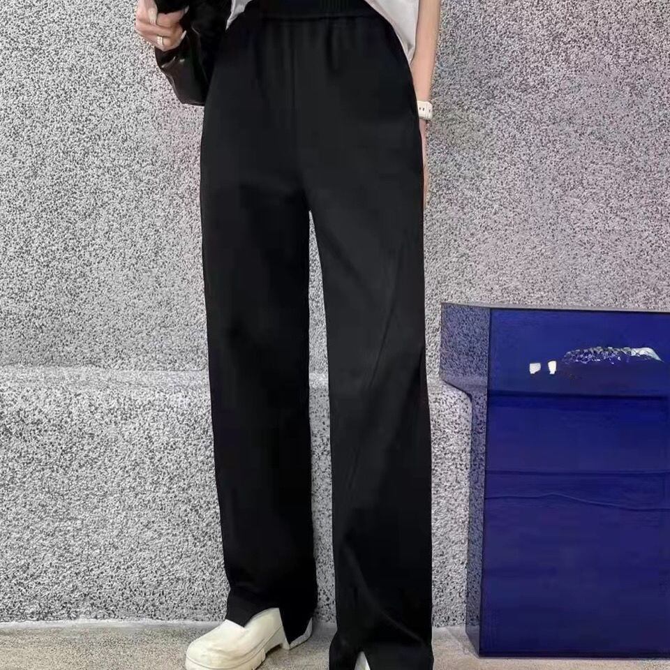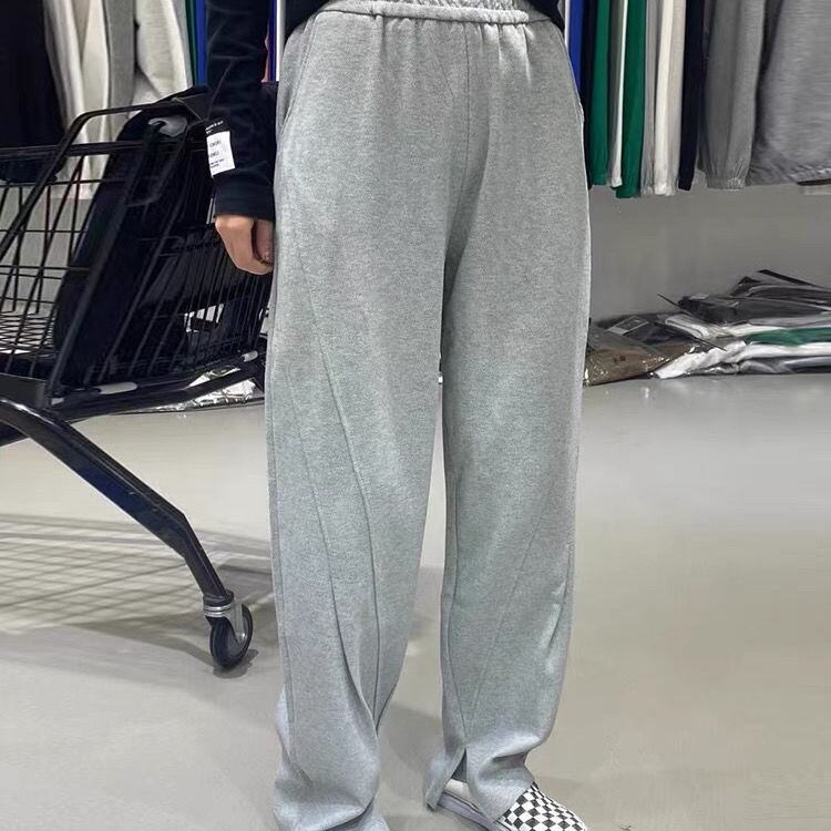 ノミクマパッチワークスプリットウーマンパンツエラスティックウエストレディースロングパンツ2022スプリングソリッドワイドレッグパンツ 伸縮 春物 ワイドパンツ ソリッドカラー kor57429291251