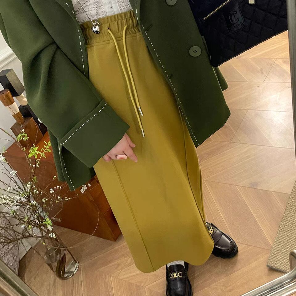 のみくまレースアップウエストウーマンスカート2022春のボトムス原因ソリッドストレートスカートFaldasDe スプリング 春物 ソリッドカラー kor89580696557