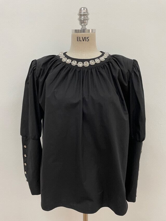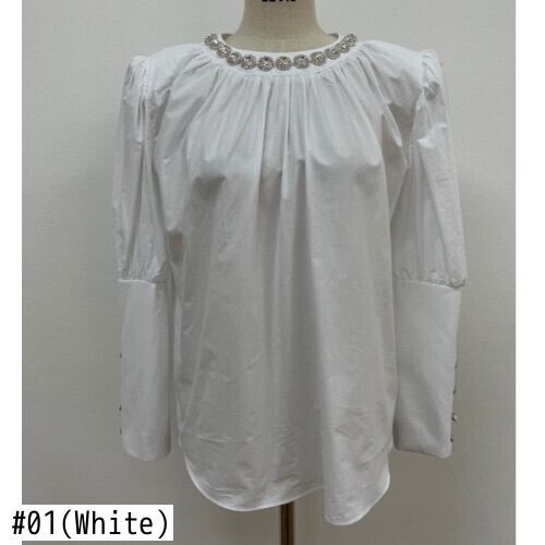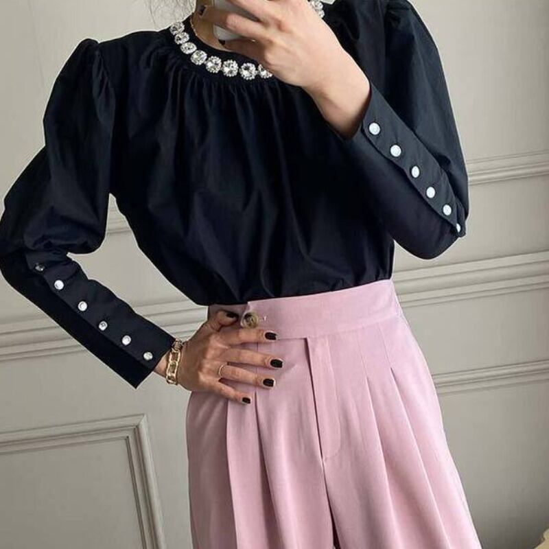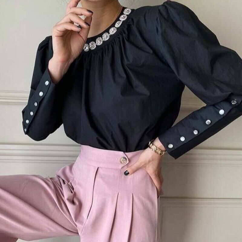 のみくまシックビーズOネックプルオーバートップスCausalPuffスリーブブラウス女性2022SpringDe スプリング 春物 kor17066111589