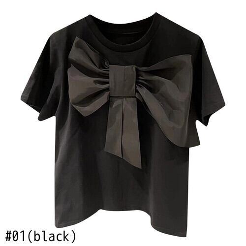 のみくまスウィートボウノットウーマンTシャツシックサマー半袖グラフィックTシャツCausalO-neck2022プルオーバーTシャツ ショート リボン ハーフスリーブ 大人ガーリー キュート カジュアル 夏物 Oネック kor71605669320
