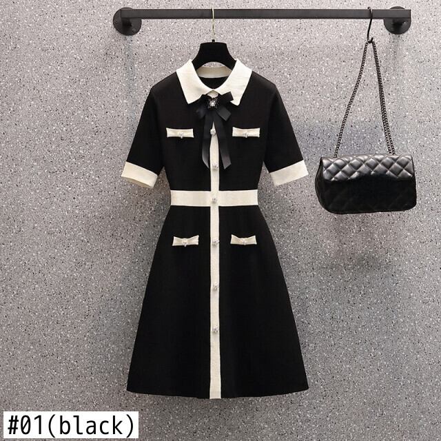 のみくま蝶ネクタイサマーニットドレス女性2022セータードレスVestidosローブ リボン 夏物 kor63431999044