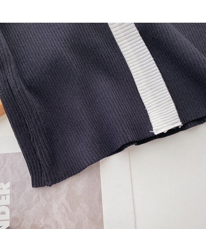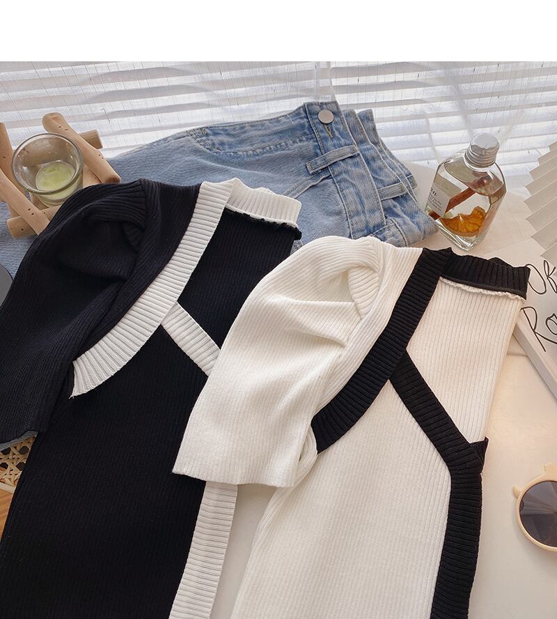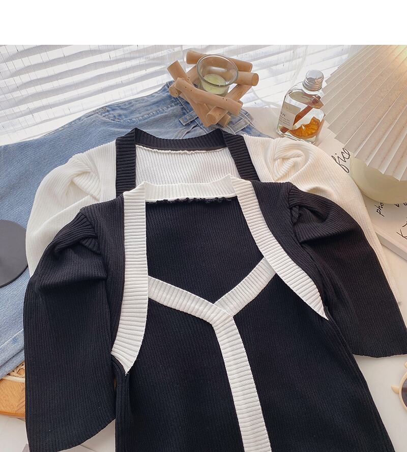 ノミクマ2022サマースリムショートウーマンセーターシックパフスリーブスクエアカラープルオーバーニットコントラストカラーニットトップス 夏物 スクウェア kor12817968036