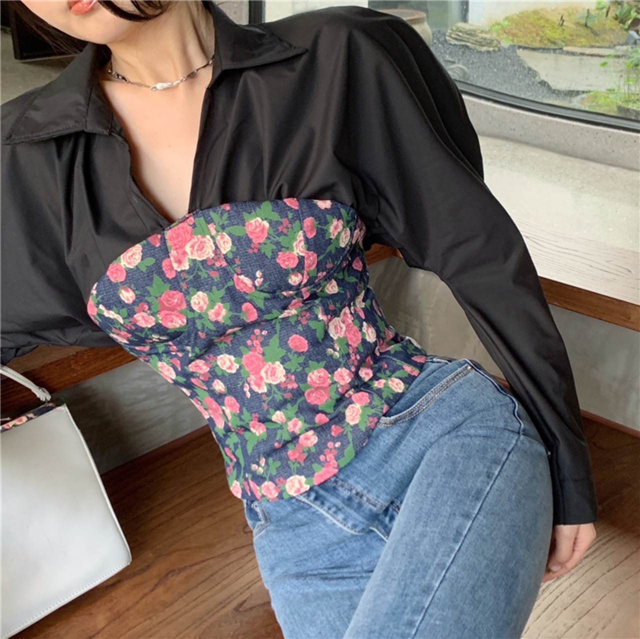 Nomikuma Fake Two Pieces Blouse Women Spring Tops Floral Patchwork Shirt 2022 Style De Moda ブラウス スプリング 春物 花柄 kor69410316508