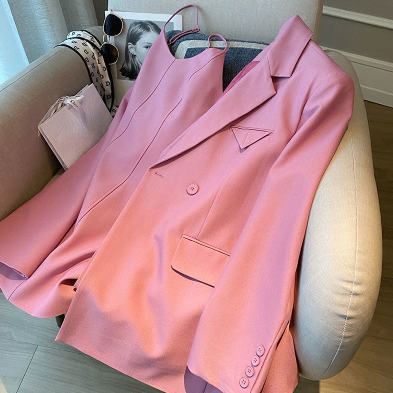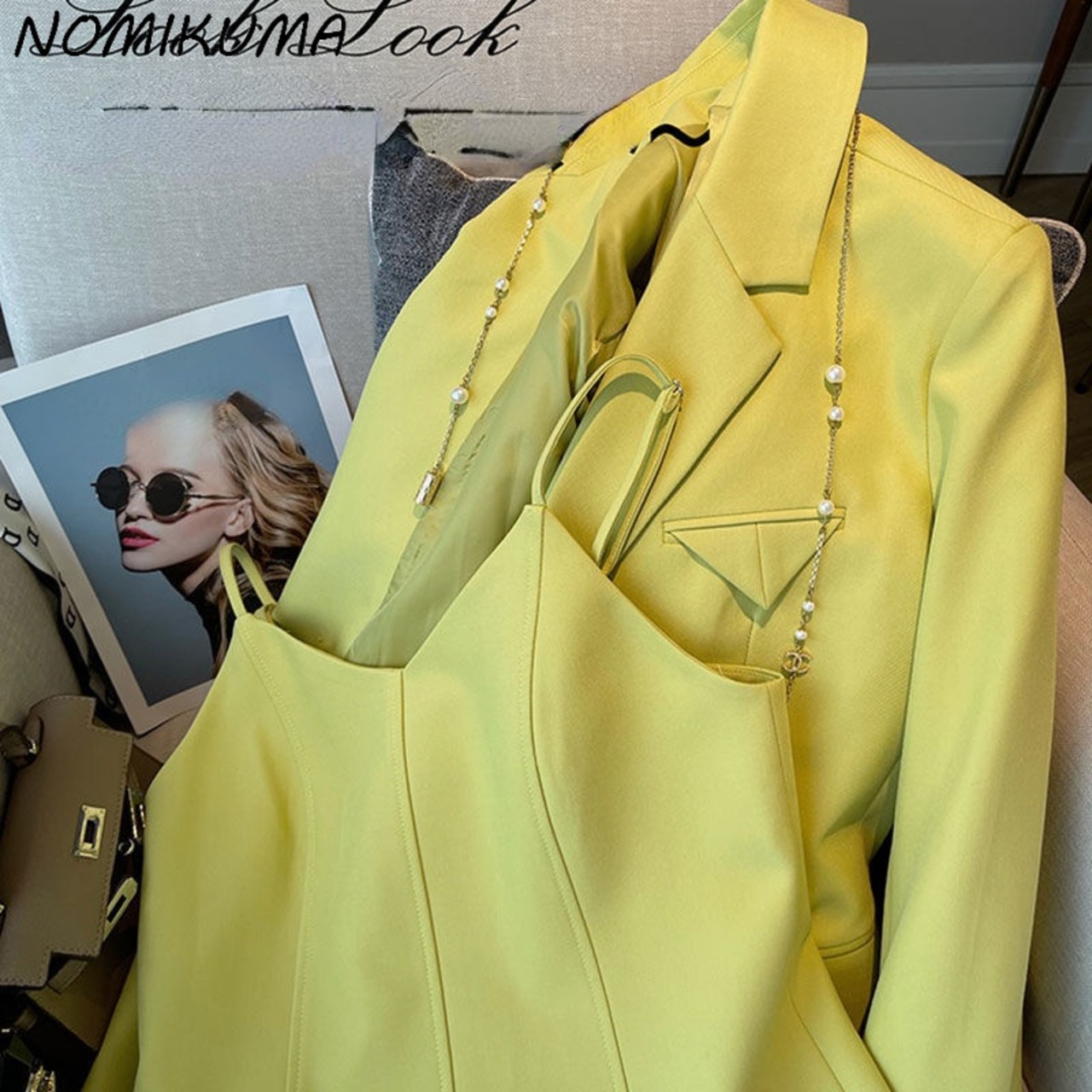 ノミクマドレスセット女性2022年春秋ツーピーススーツカジュアルブレザーコート+バイスクスリングドレス衣装 スプリング 春物 オータム 秋物 kor50128718237