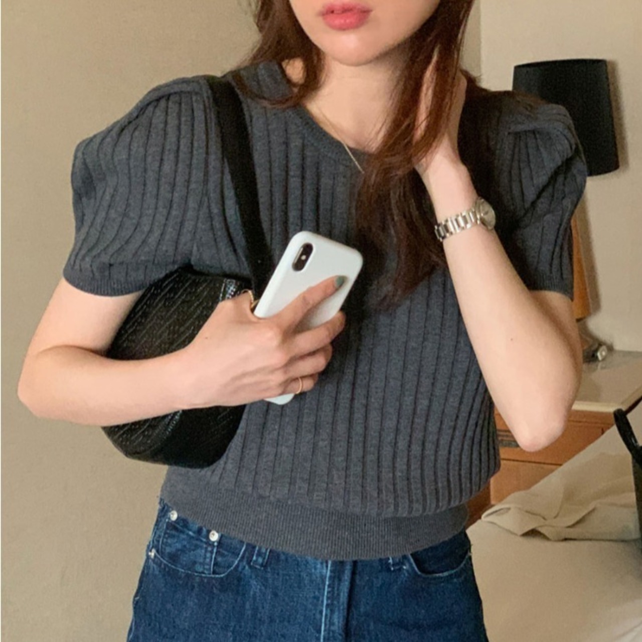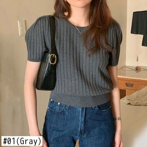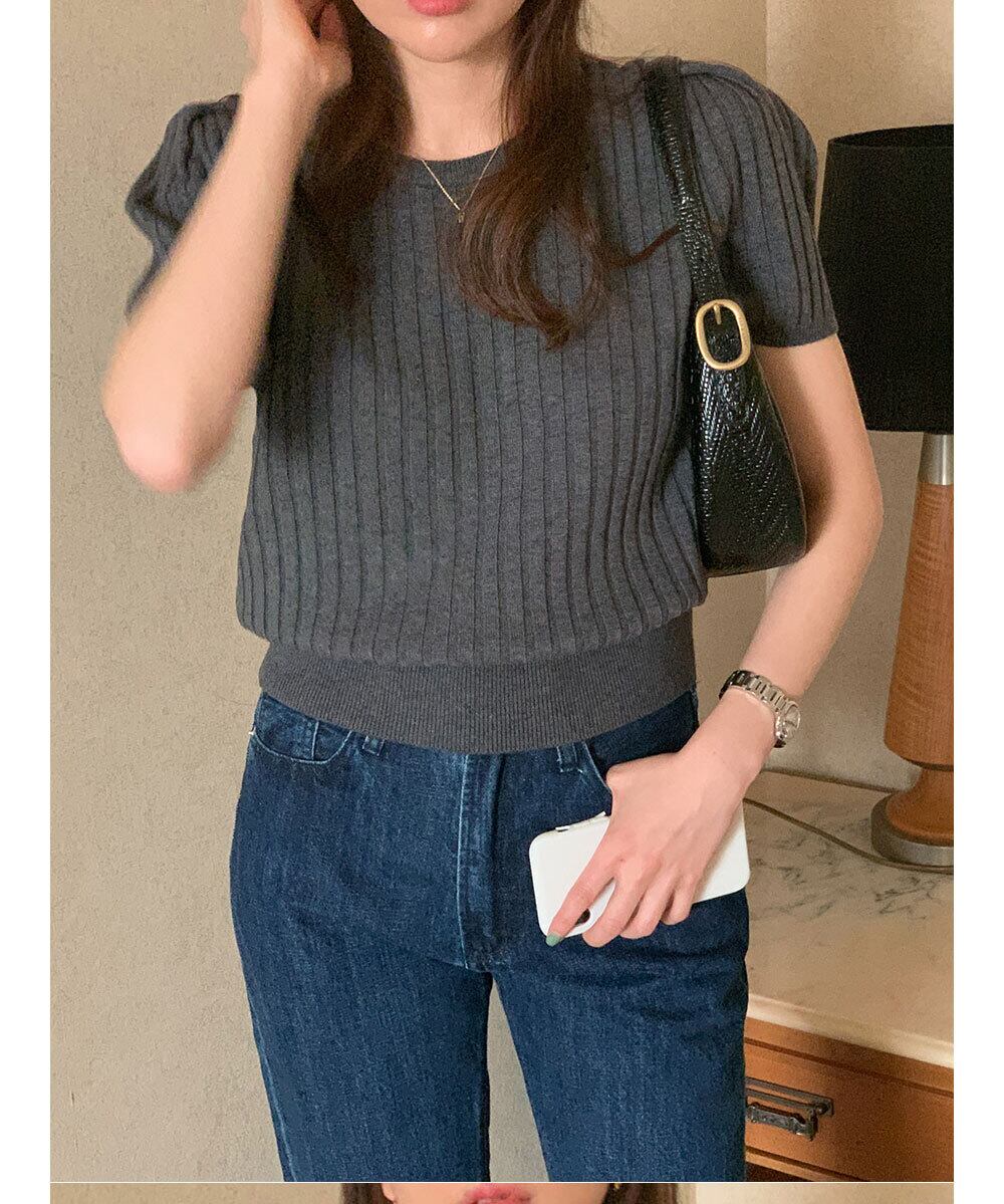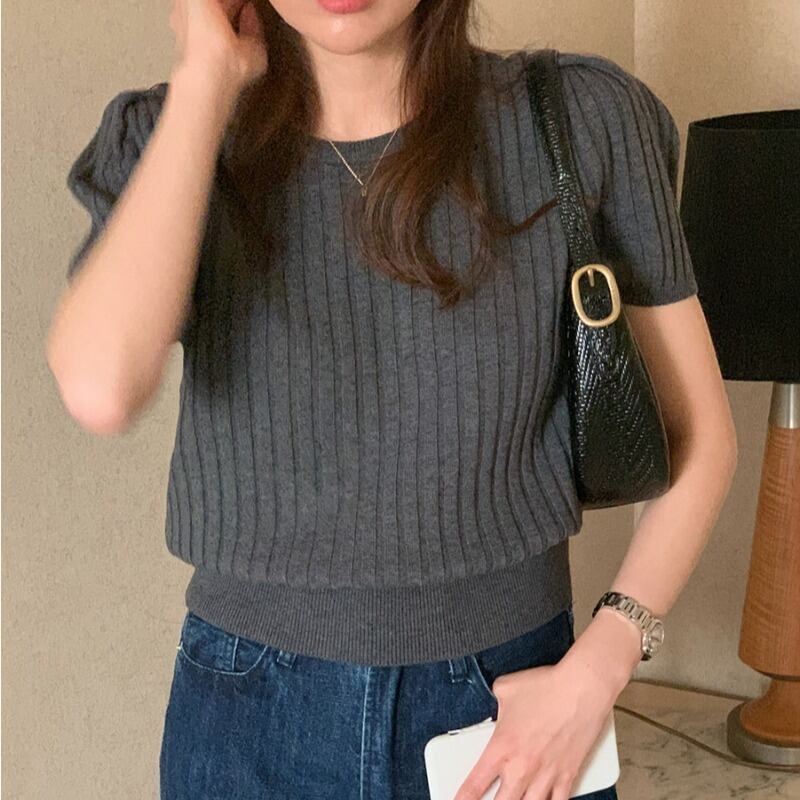 のみくまパフスリーブOネックウーマンセーターCausalシックサマーニットCausal2022ショートニットトップス 夏物 kor9677265053