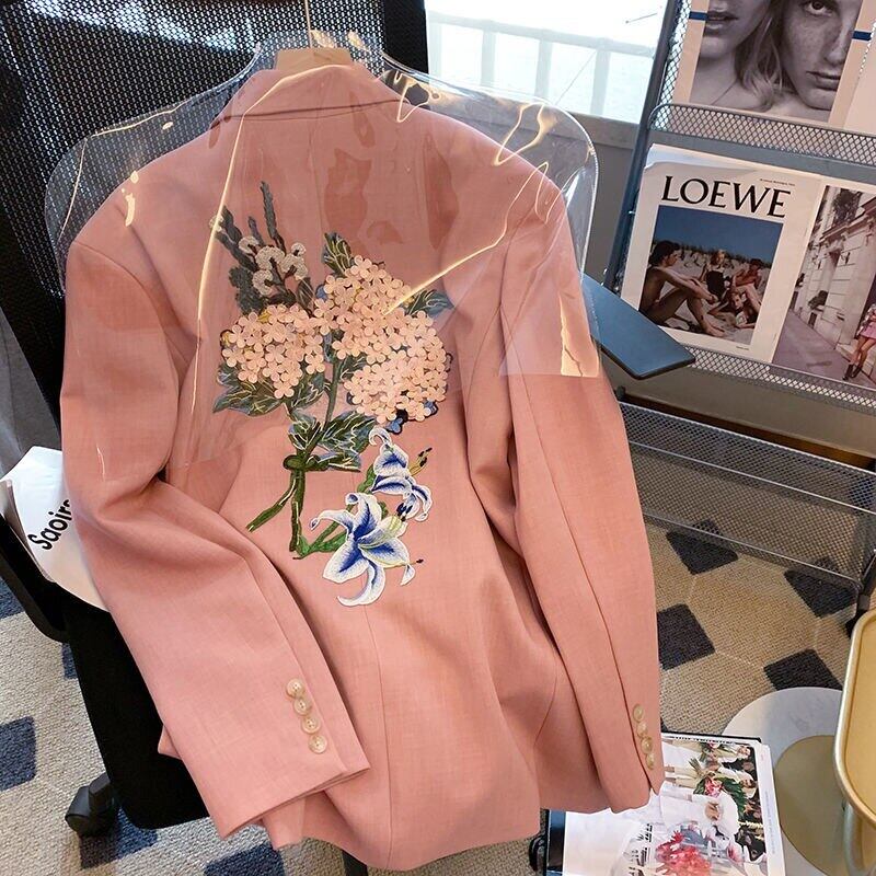 ノミクマレディースブレザーフローラル刺繡コート長袖ターンダウンカラースーツジャケット2022スプリングブレザートップス ロング 刺繍 春物 花柄 kor53462930870