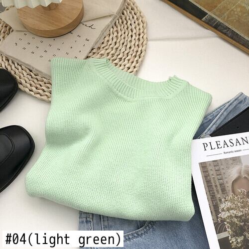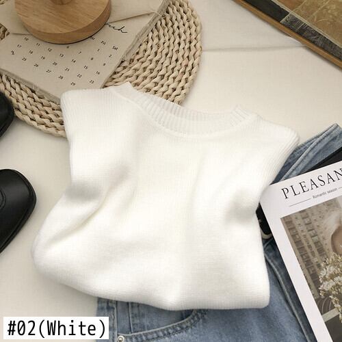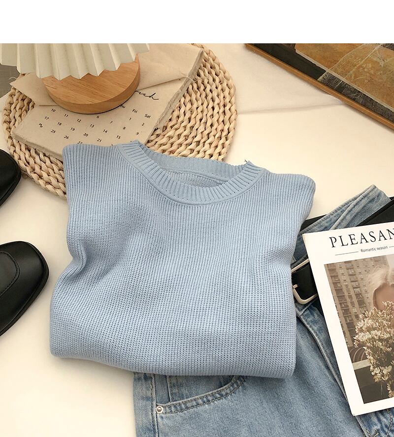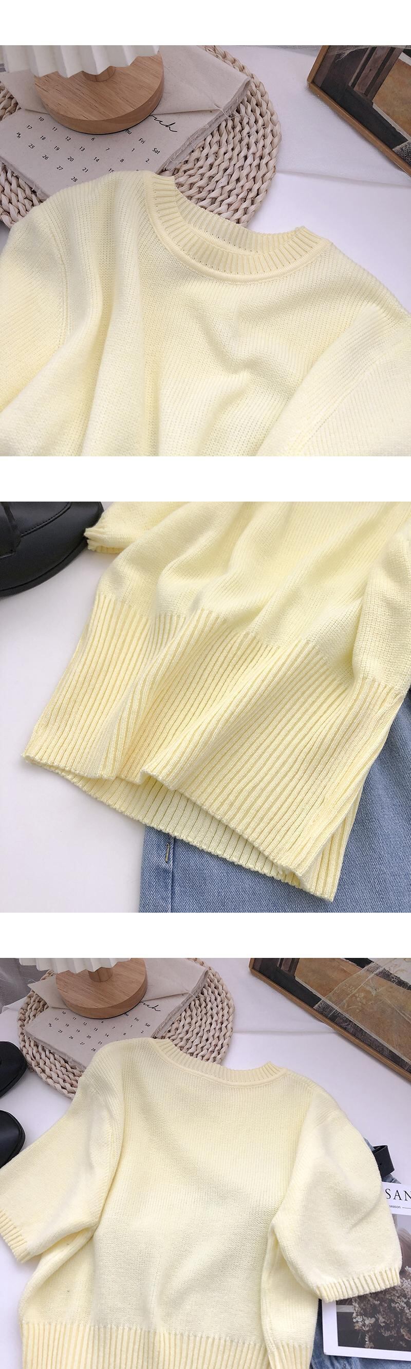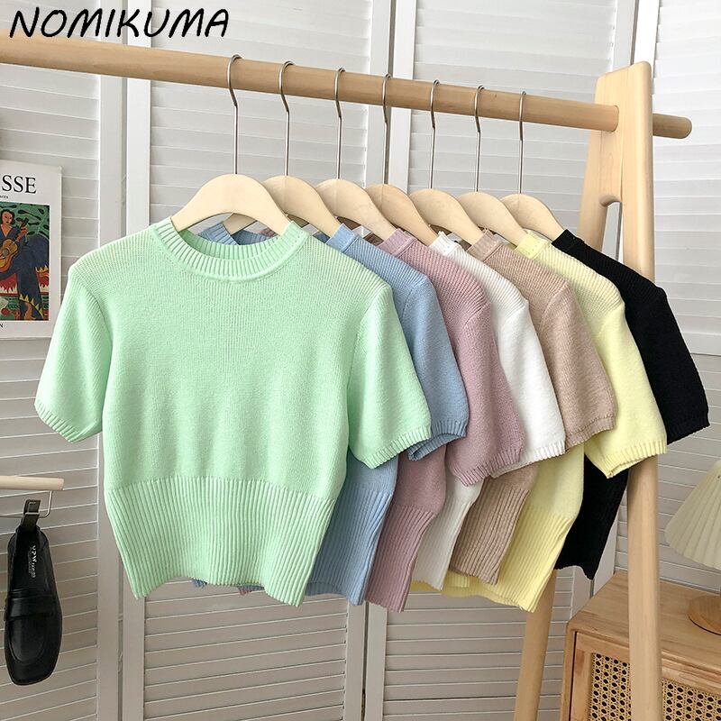 ノミクマ2022春夏女性セーターシックなソリッド半袖Oネックニットカジュアルスウィートショートニットトップス ハーフスリーブ 大人ガーリー キュート スプリング 春物 サマー 夏物 ソリッドカラー kor11621981434
