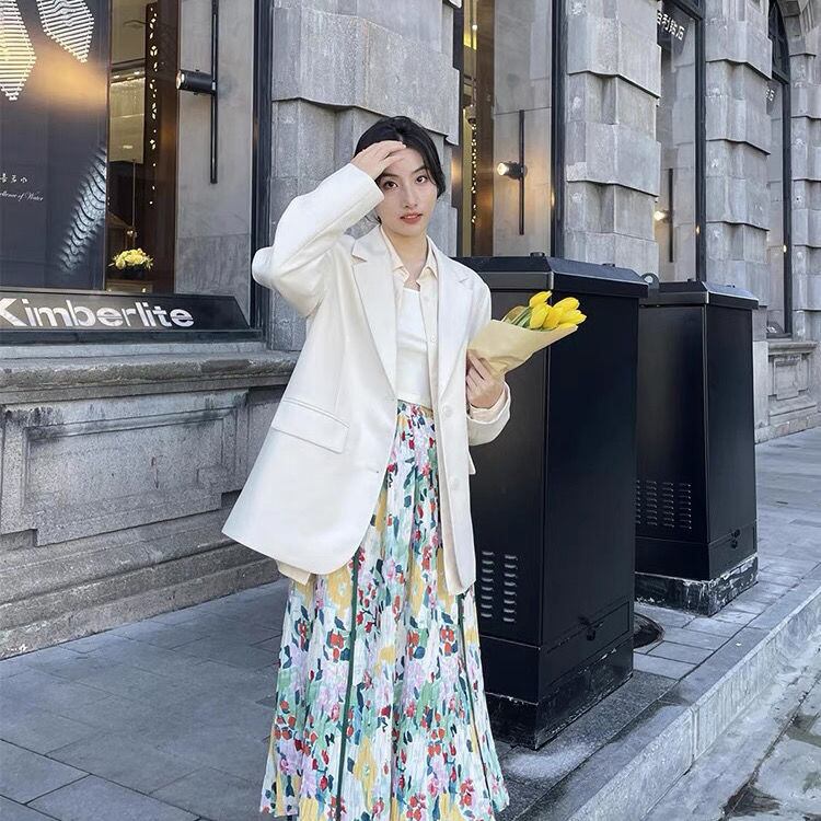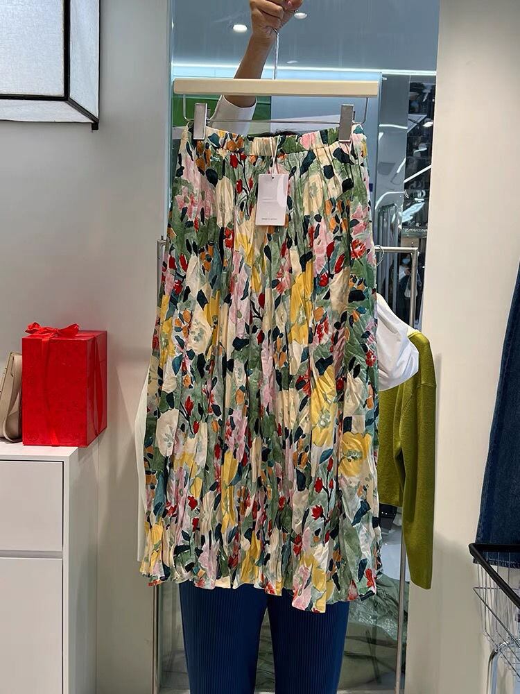 のみくまフローラルスカート伸縮性ウエスト女性2022年春夏ボトムスカジュアルスタイルAラインスカートファルダス エラスティック スプリング 春物 サマー 夏物 花柄 kor7722750177