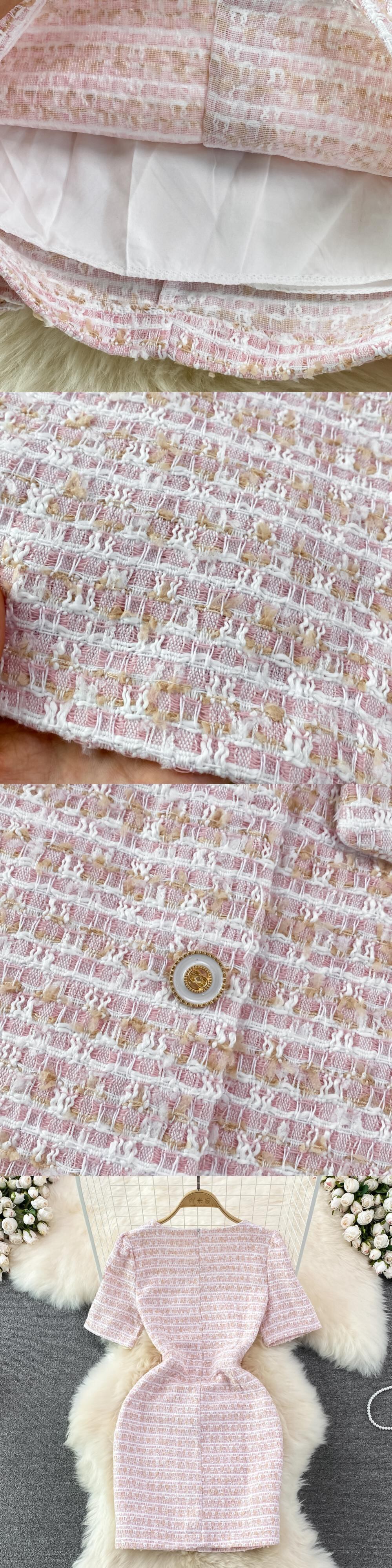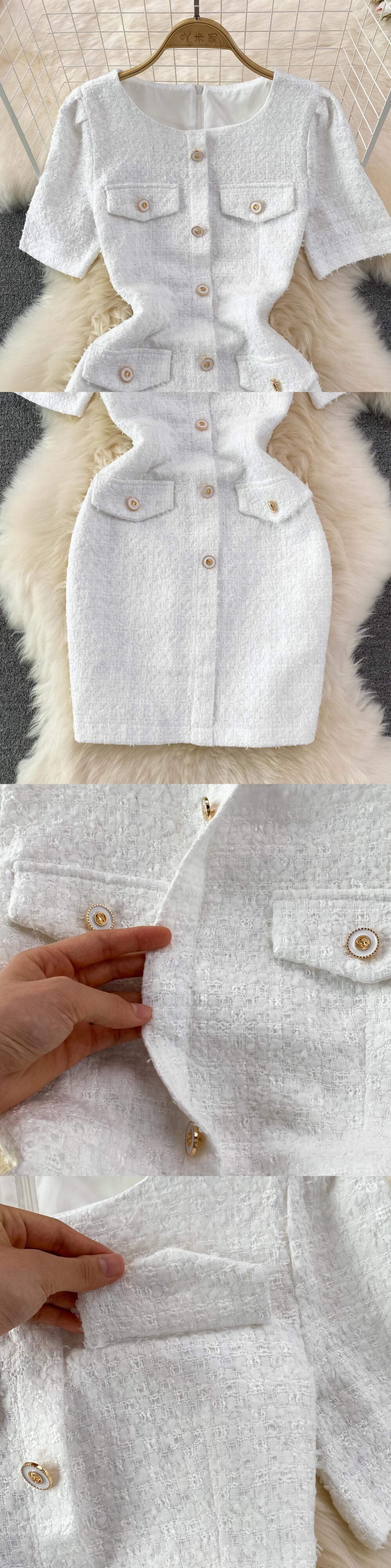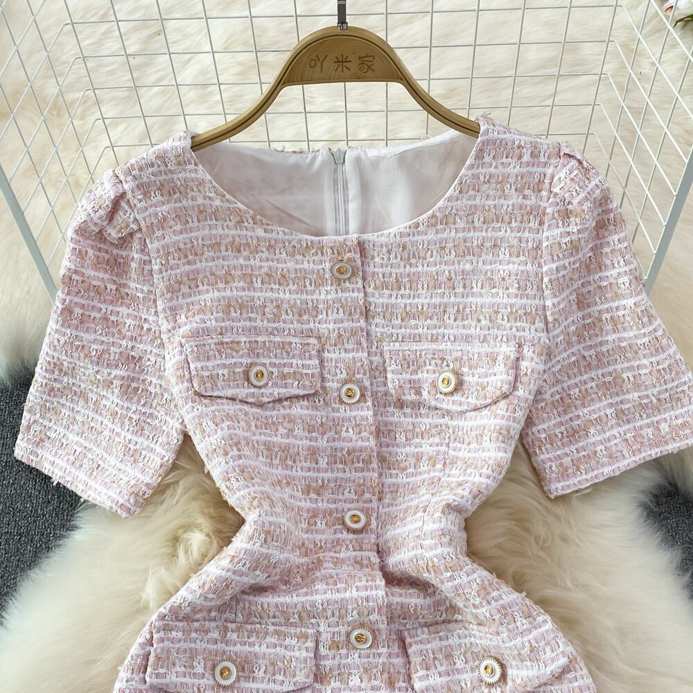 のみくまシングルブレストドレスレディースパフ半袖Oネックワンピース2022サマーヴェスティドス ショート ハーフスリーブ 夏物 kor40638545216