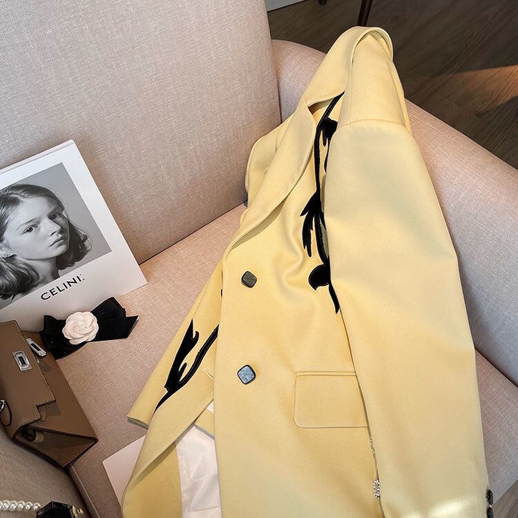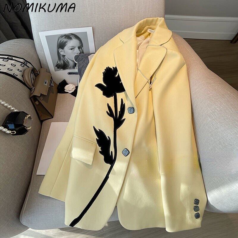 のみくま刺繡ブレザーコート女性2022年春のスーツジャケット長袖ターンダウンカラーブレザーフェミニモス ロング 刺繍 スプリング 春物 kor6241522238