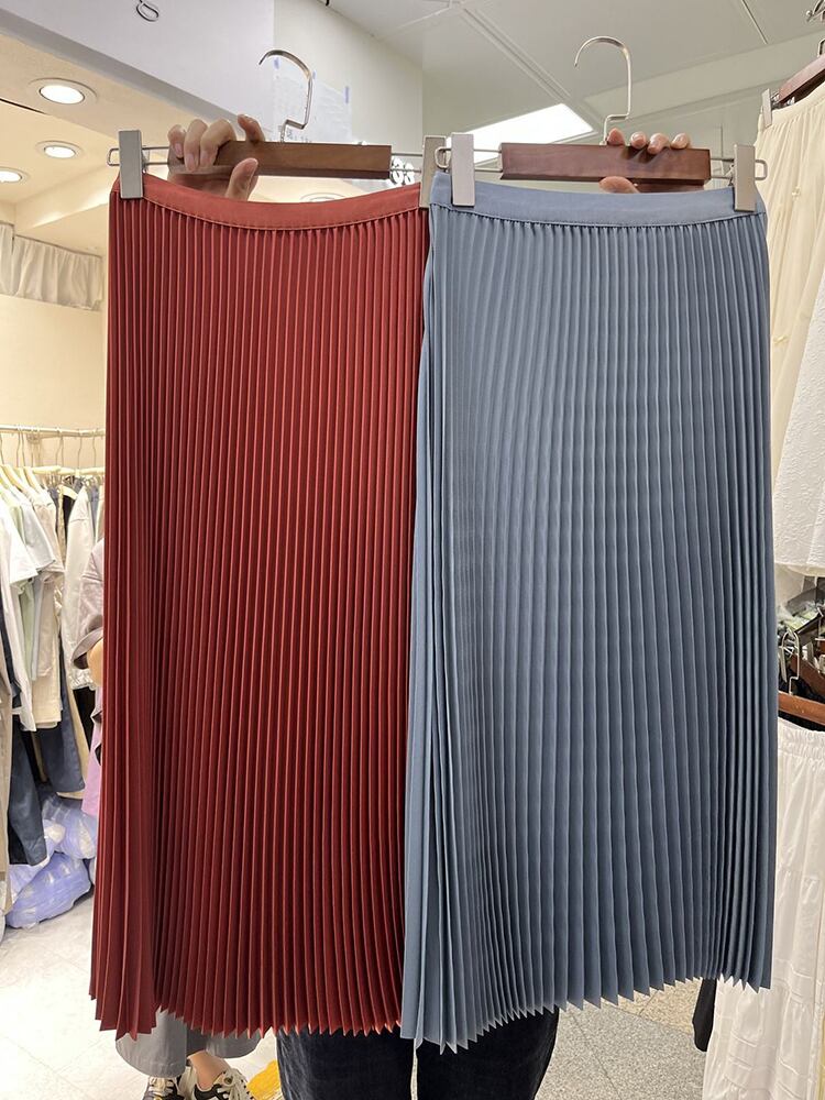 のみくま因果折り畳みAラインミッドカーフウーマンスカート春秋伸縮性ウエストスカート2022ボトムスファルダス エラスティック スプリング 春物 オータム 秋物 kor30557031184