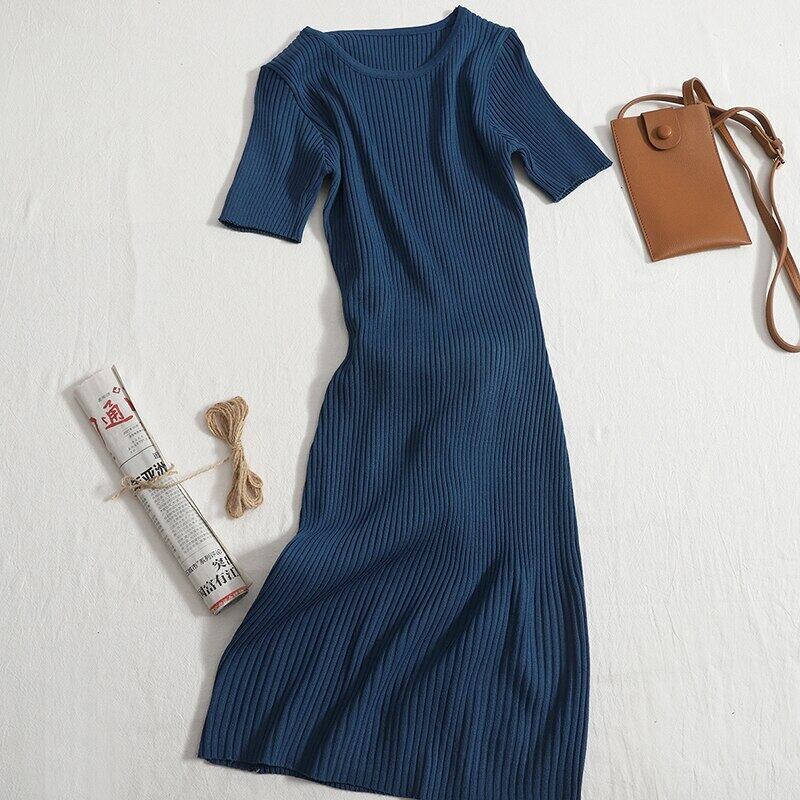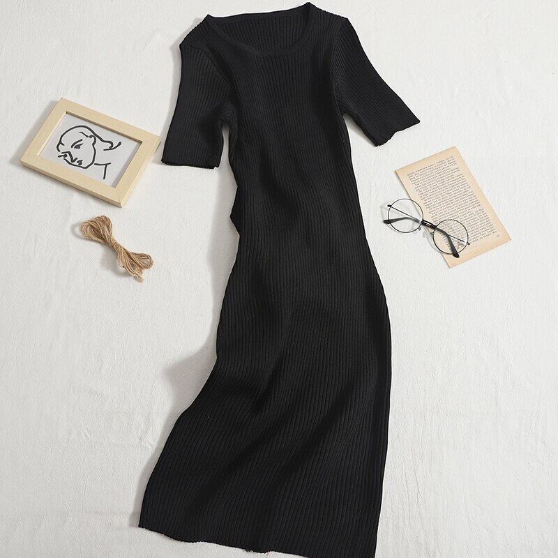 ノミクマバックホローアウトボウバンデージドレスレディース2022サマードレス半袖OネックVestidos ショート リボン ハーフスリーブ 夏物 kor80764959790